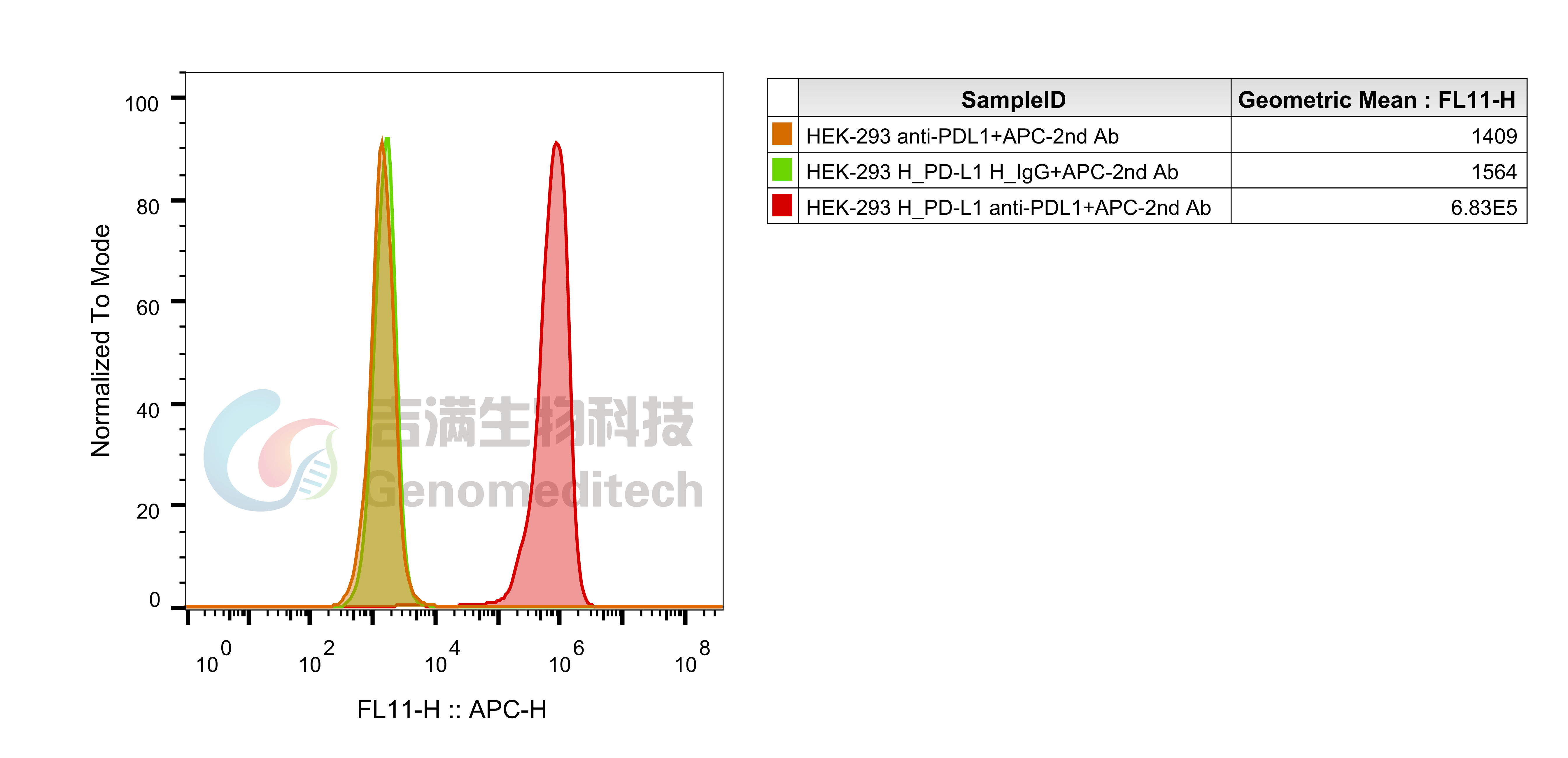 基于HEK-293细胞,使用慢病毒技术构建的稳定表达H_CD274的单克隆细胞系。