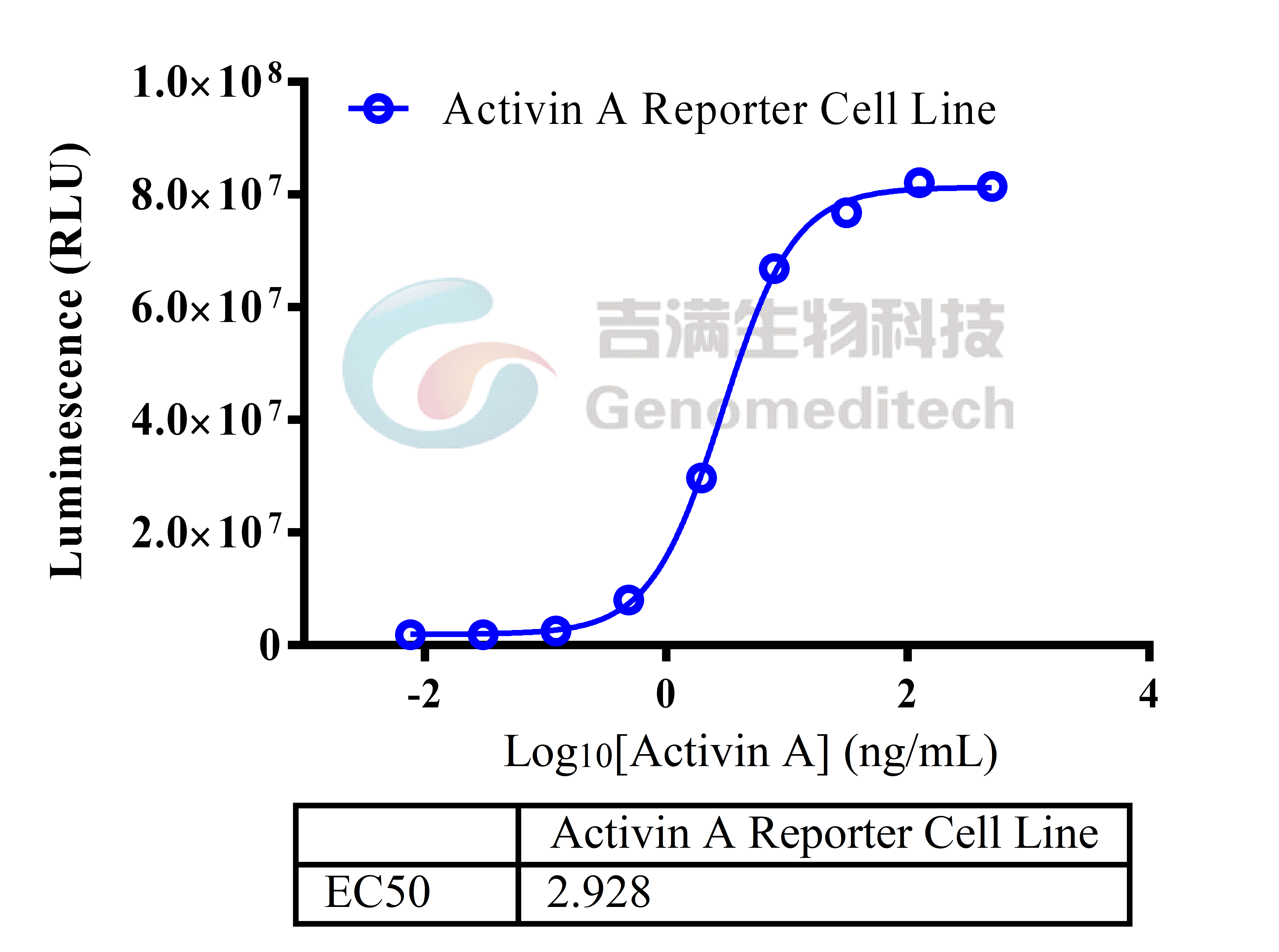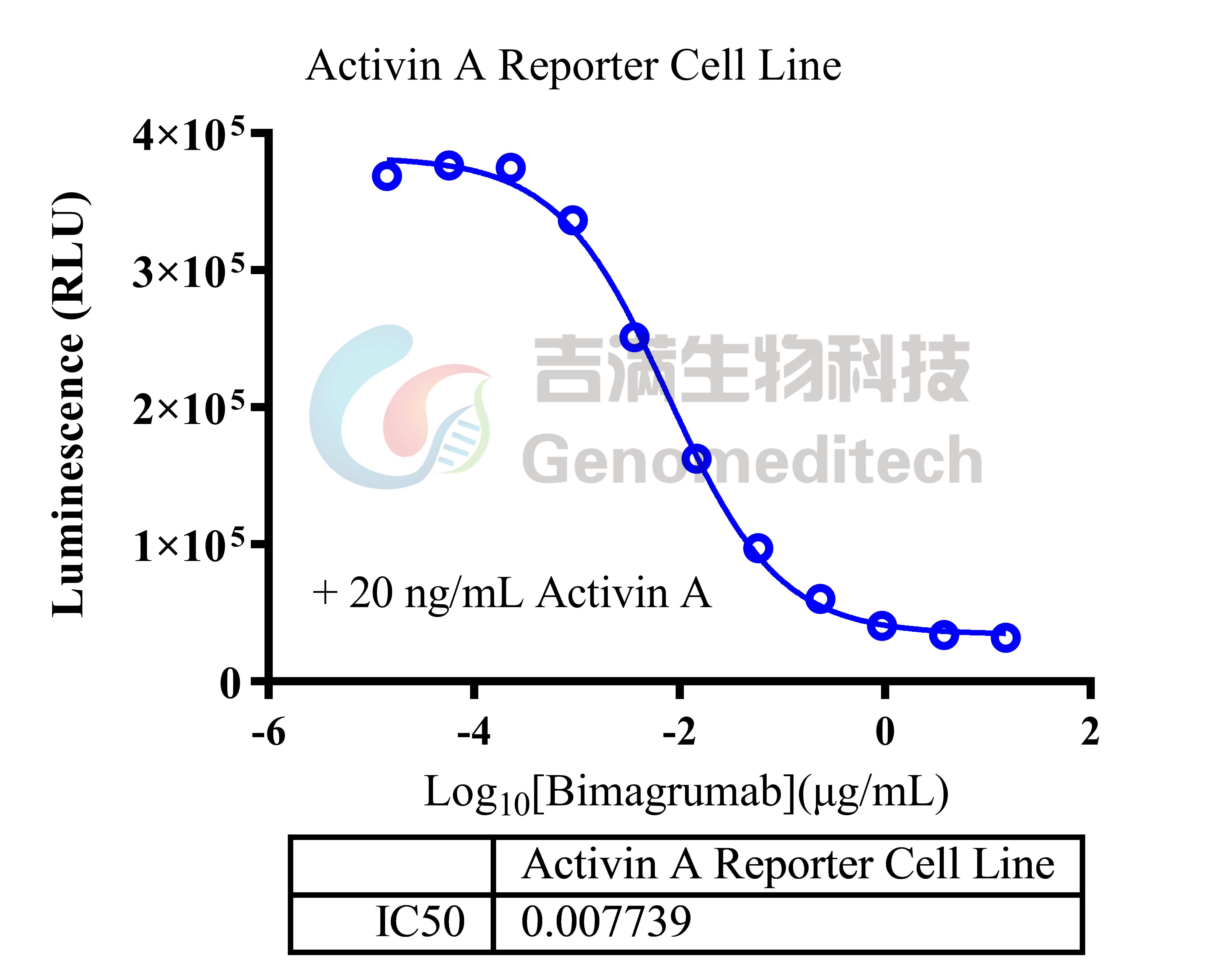 | 产品编号:GM-C26082 产品名称:Activin A Reporter Cell Line ActRIIA (ACVR2A)和ActRIIB(ACVR2B)是转化生长因子β(TGF-β)受体家族的成员,是包括活化素A(Activin A)和活化素B(Activin B)及BMP7、BMP9、BMP10、GDF1、GDF8(myostatin)、 GDF11和Nodal在内的其他TGF-β家族成员的II型号受体。 ALK4和ALK7分别是活化素A和活化素B的主要I型TGF-β受体家族成员。Bimagrumab 是一种人源单克隆抗体,可阻断激活素 II 型受体 (ActRII),从而对骨骼肌生长进行调节。 吉满生物Activin A Reporter Cell Line细胞系是基于Activin A作为激动剂的一种Luciferase报告基因细胞系(此细胞只用于Activn A活性检测;不区分ACVR2A、ACVR2B)。当Activin A与受体结合,激活信号通路,从而激活荧光素酶(Luciferase)的表达,Luciferase读值即代表信号通路的激活效果。另外,此激活效果也可被阻断型抗体阻断,例如Bimagrumab,因此可用于相关药物的体外评价效果。 | ![]() |