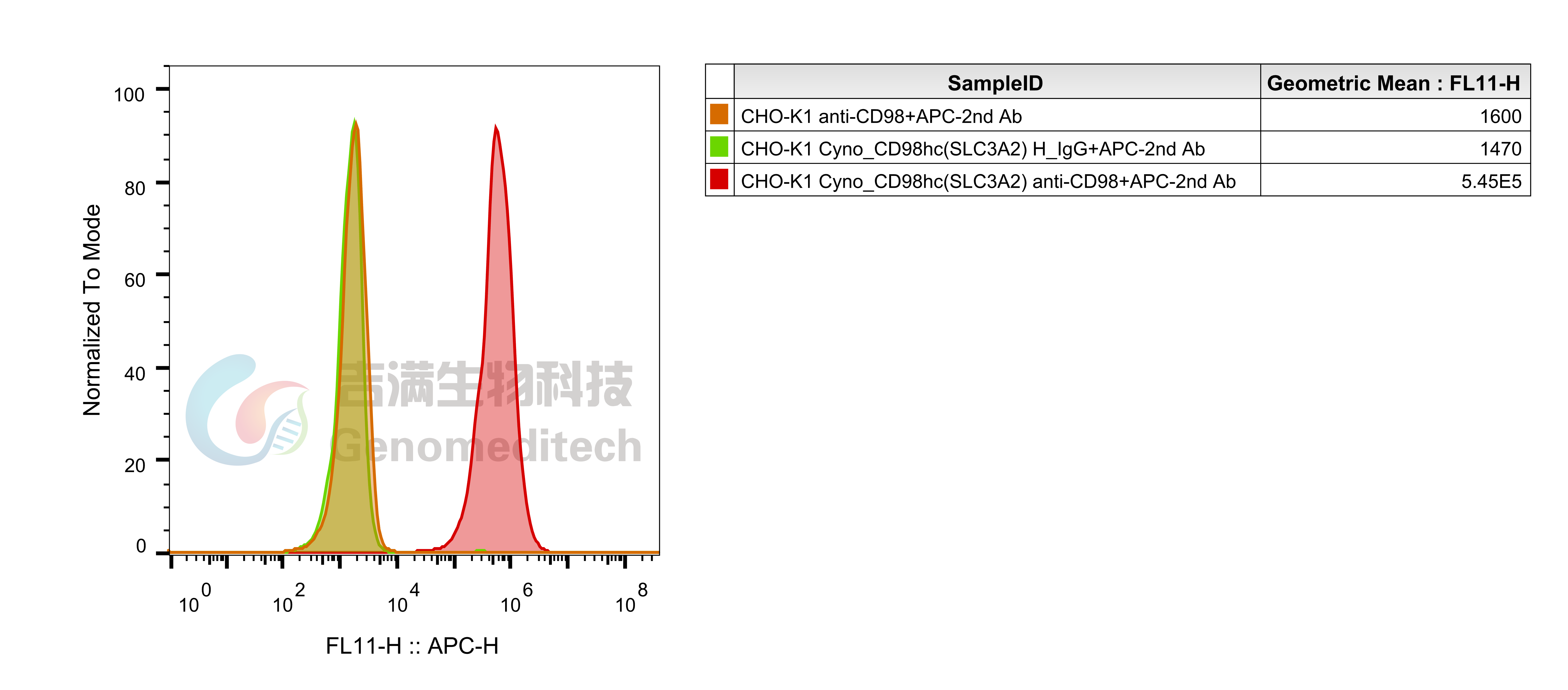 基于CHO-K1细胞,使用慢病毒技术构建的稳定表达Cynomolgus_CD98hc的单克隆细胞系。