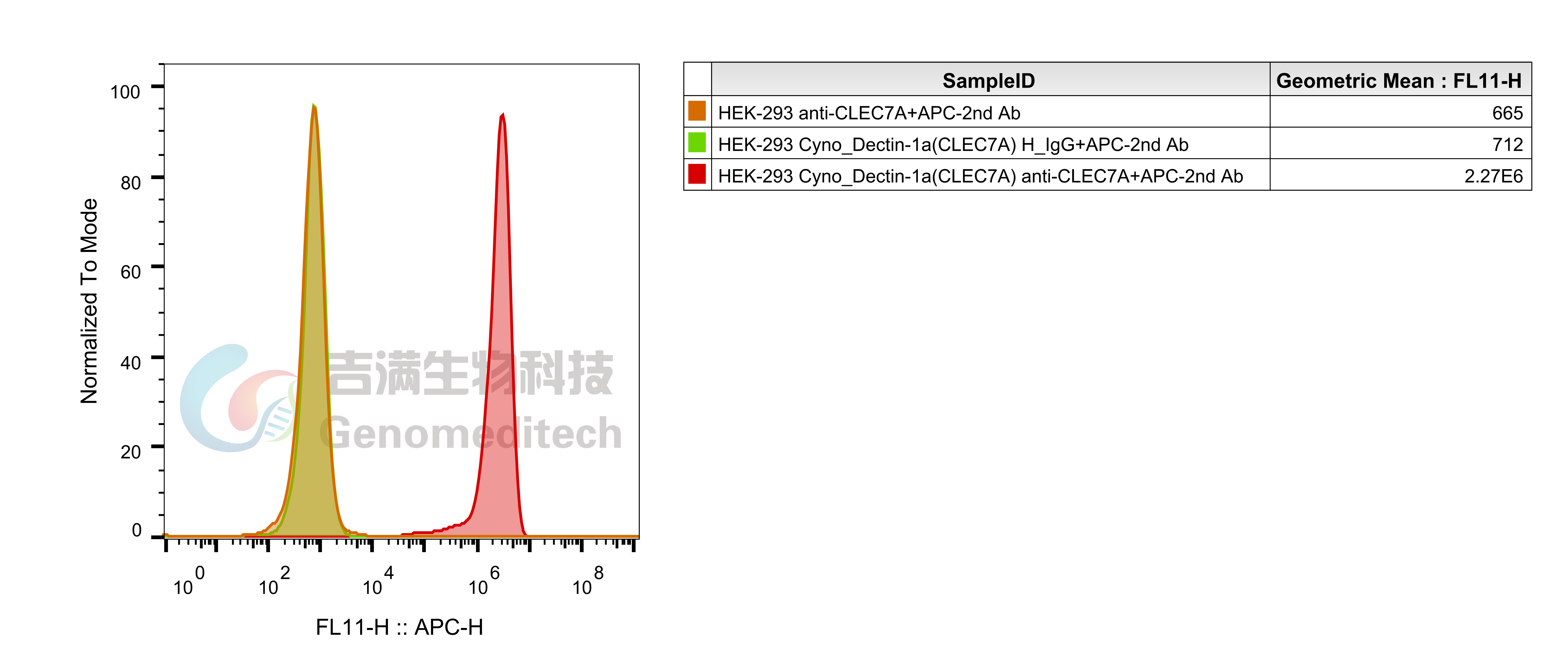 基于HEK-293细胞,使用慢病毒技术构建的稳定表达Cynomolgus_Dectin-1a的单克隆细胞系。