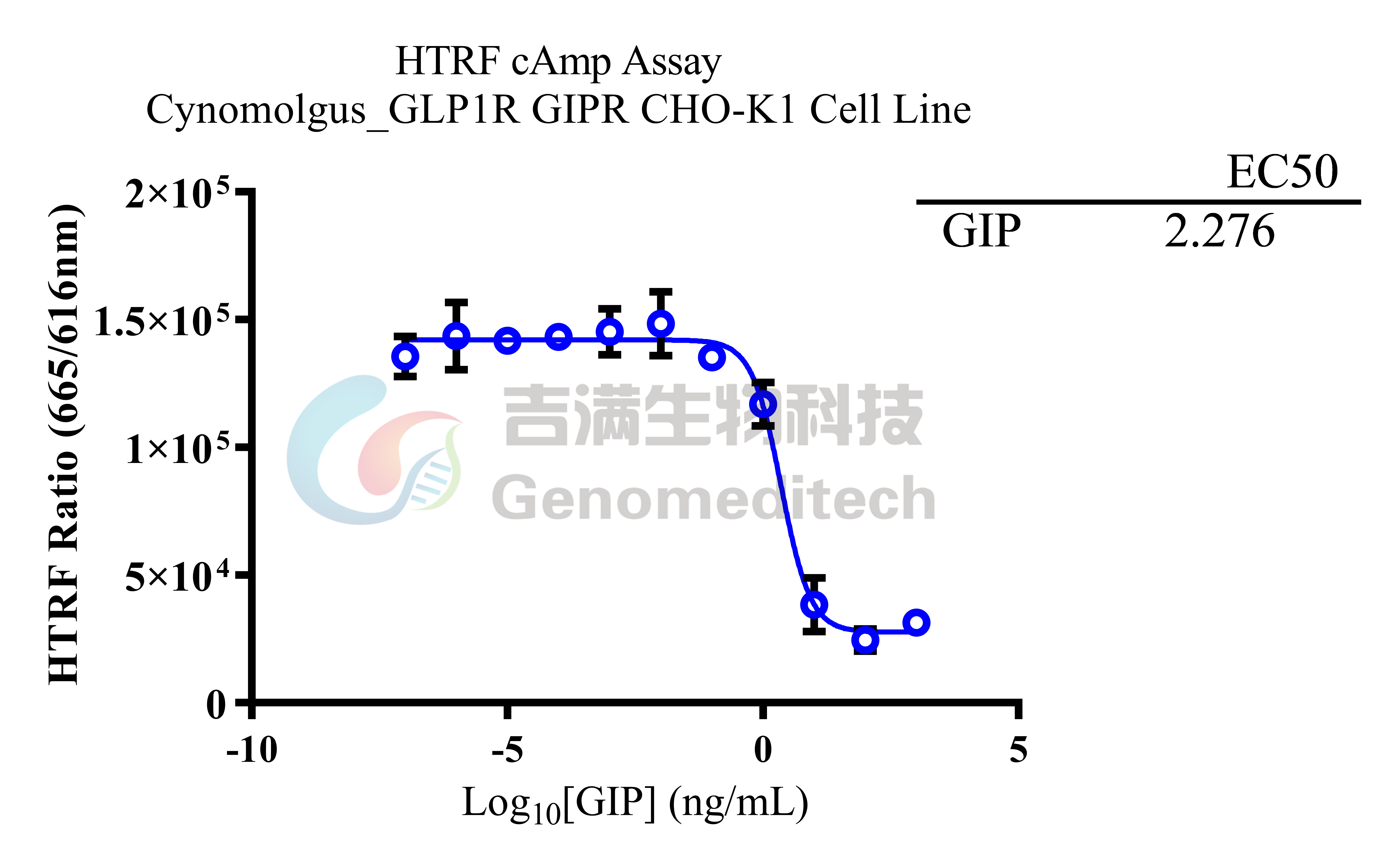 基于CHO-K1细胞,使用慢病毒技术构建的稳定表达Cynomolgus_GLP1R & Cynomolgus_GIPR的单克隆细胞系。