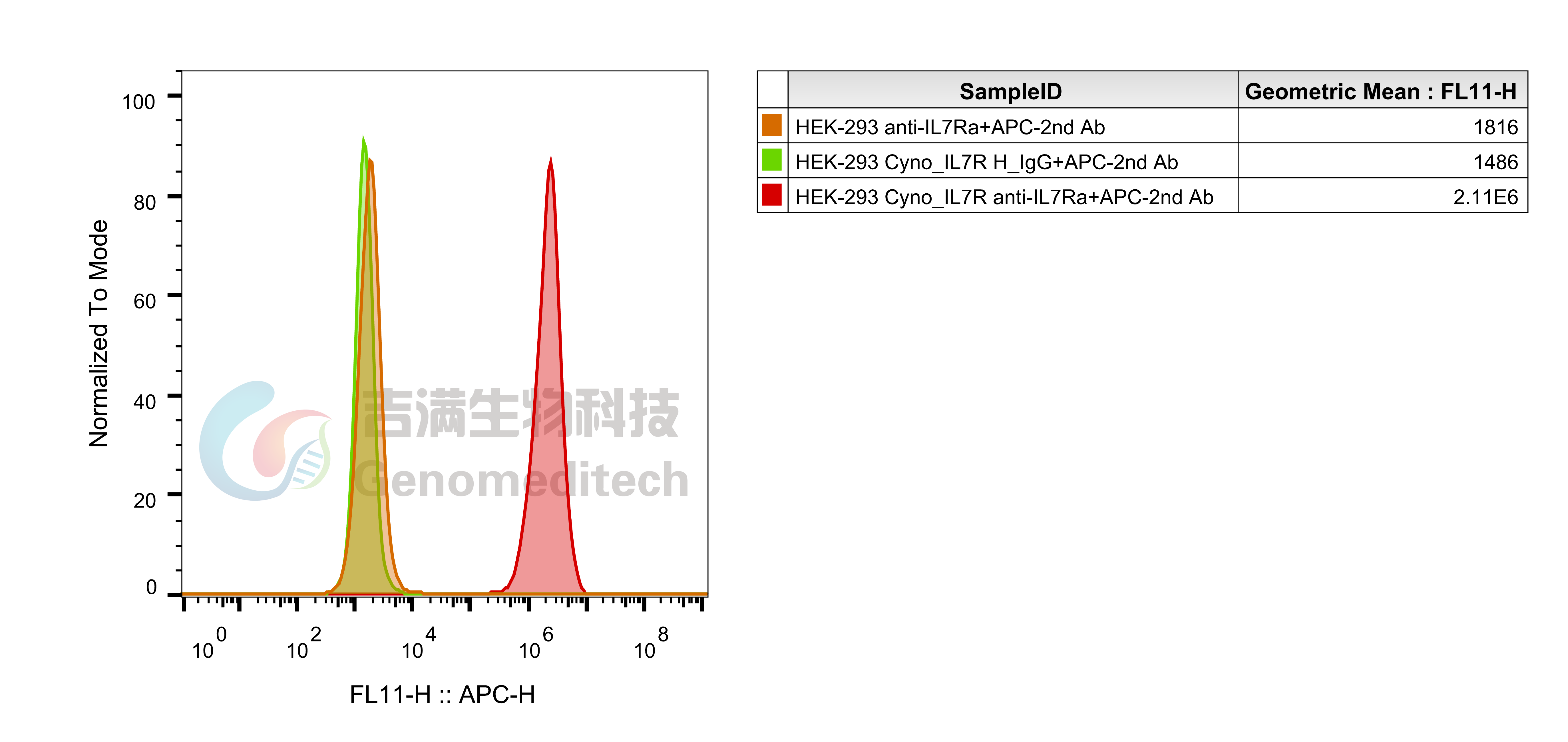 基于HEK293细胞,使用慢病毒技术构建的稳定表达Cynomolgus_IL7R的单克隆细胞系。