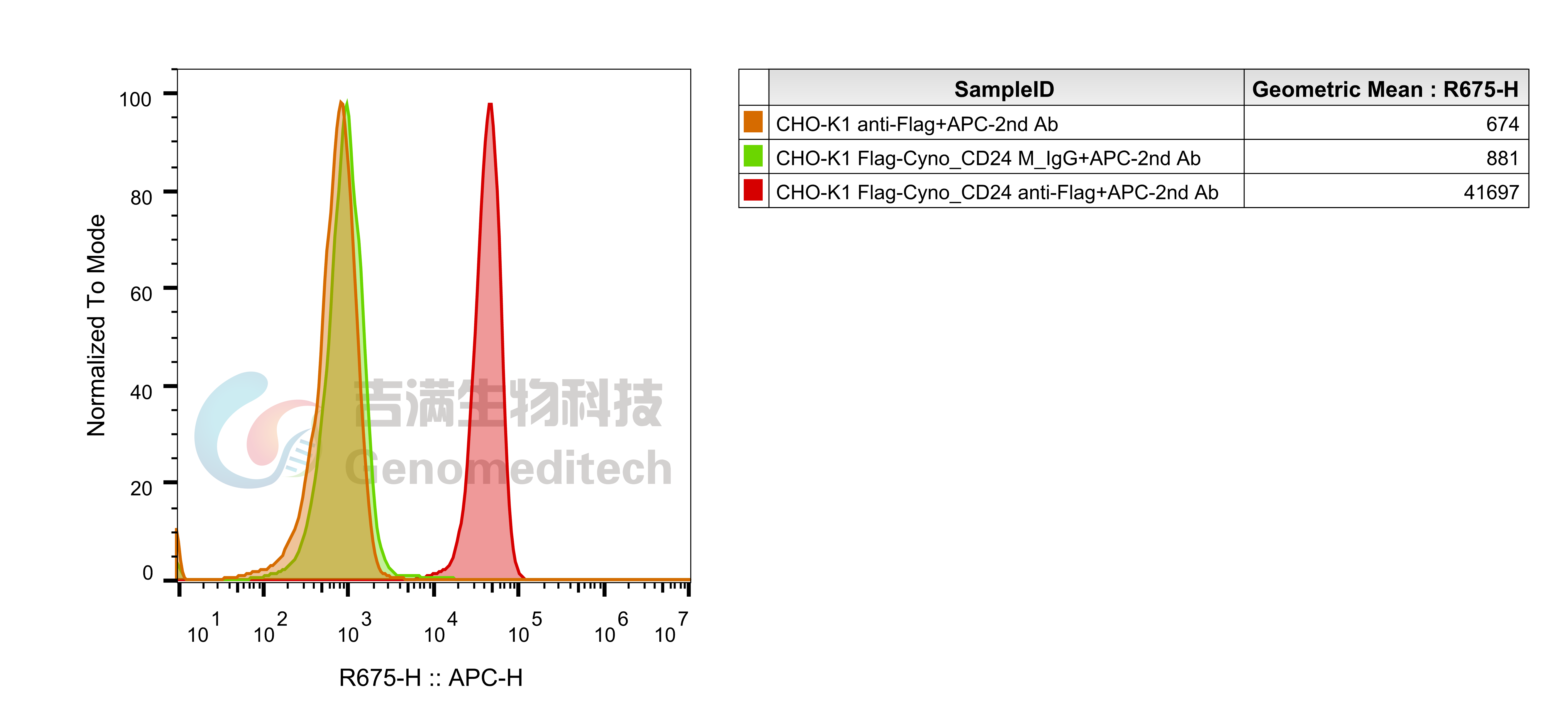 基于CHO-K1细胞,使用慢病毒技术构建的稳定表达Flag-Cynomolgus_CD24的单克隆细胞系。