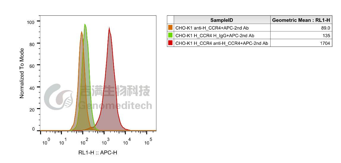 基于CHO-K1细胞,使用慢病毒技术构建的稳定表达H_CCR4的单克隆细胞系。
