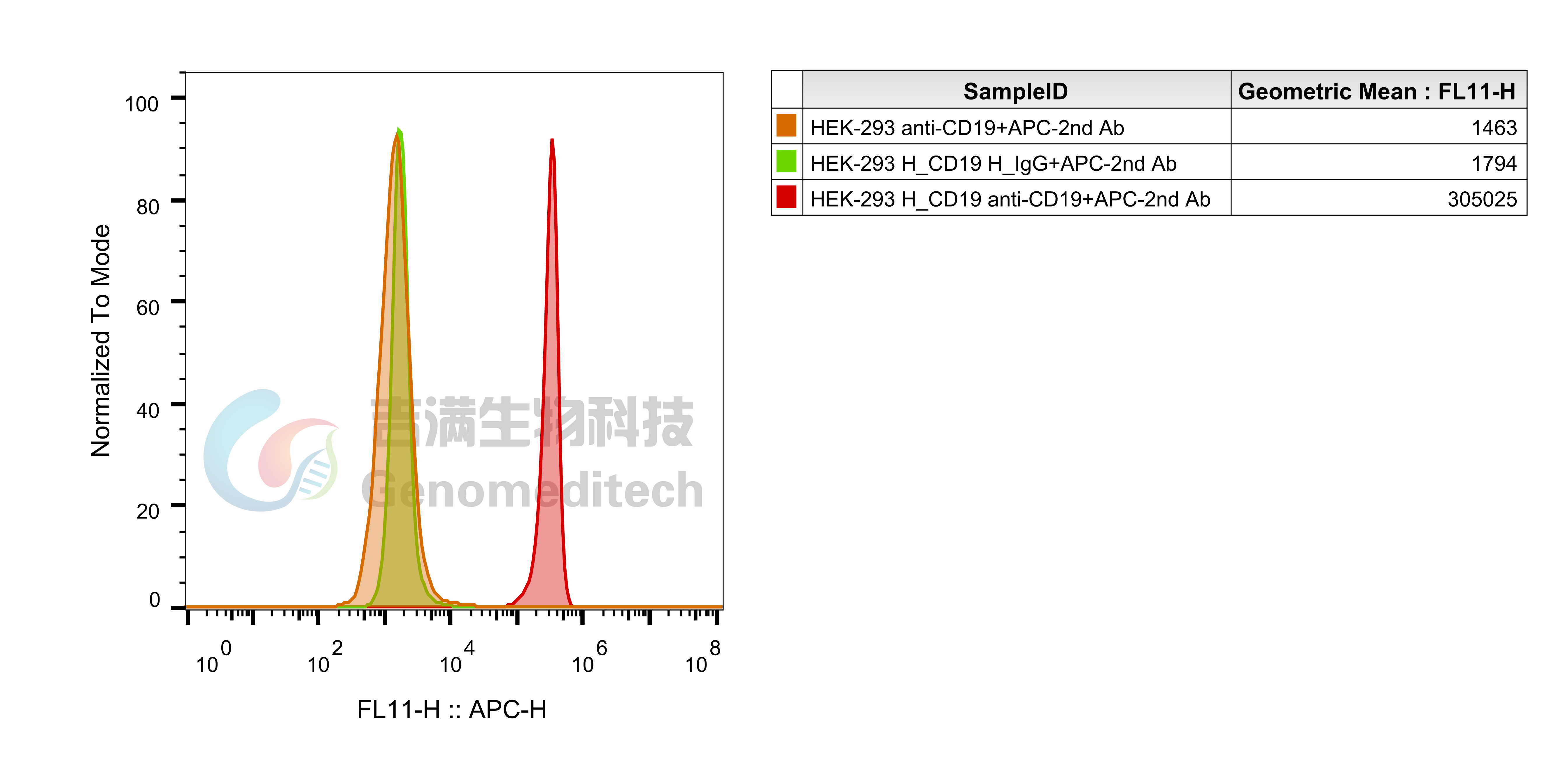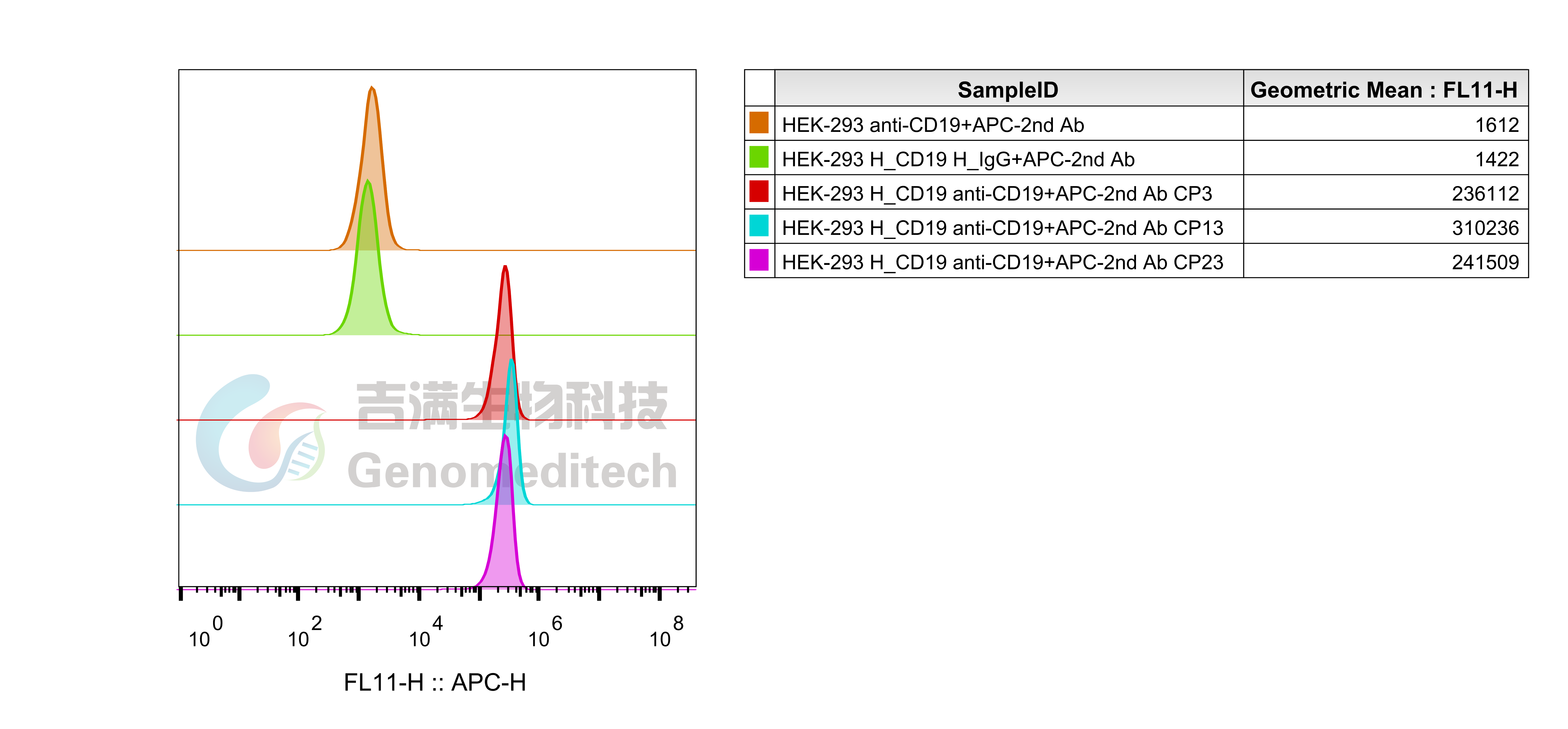 基于HEK293细胞,使用慢病毒技术构建的稳定表达H_CD19的单克隆细胞系。