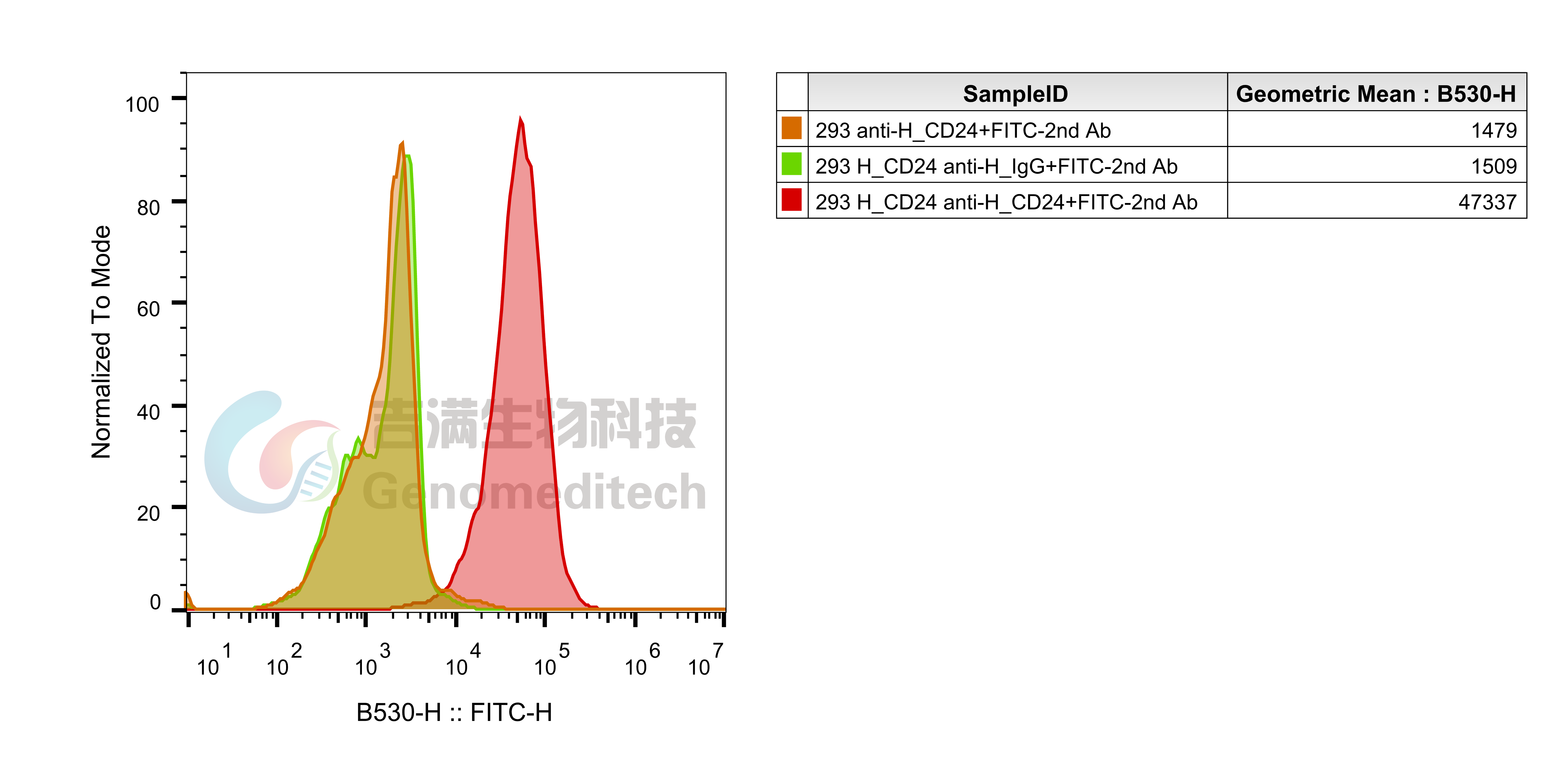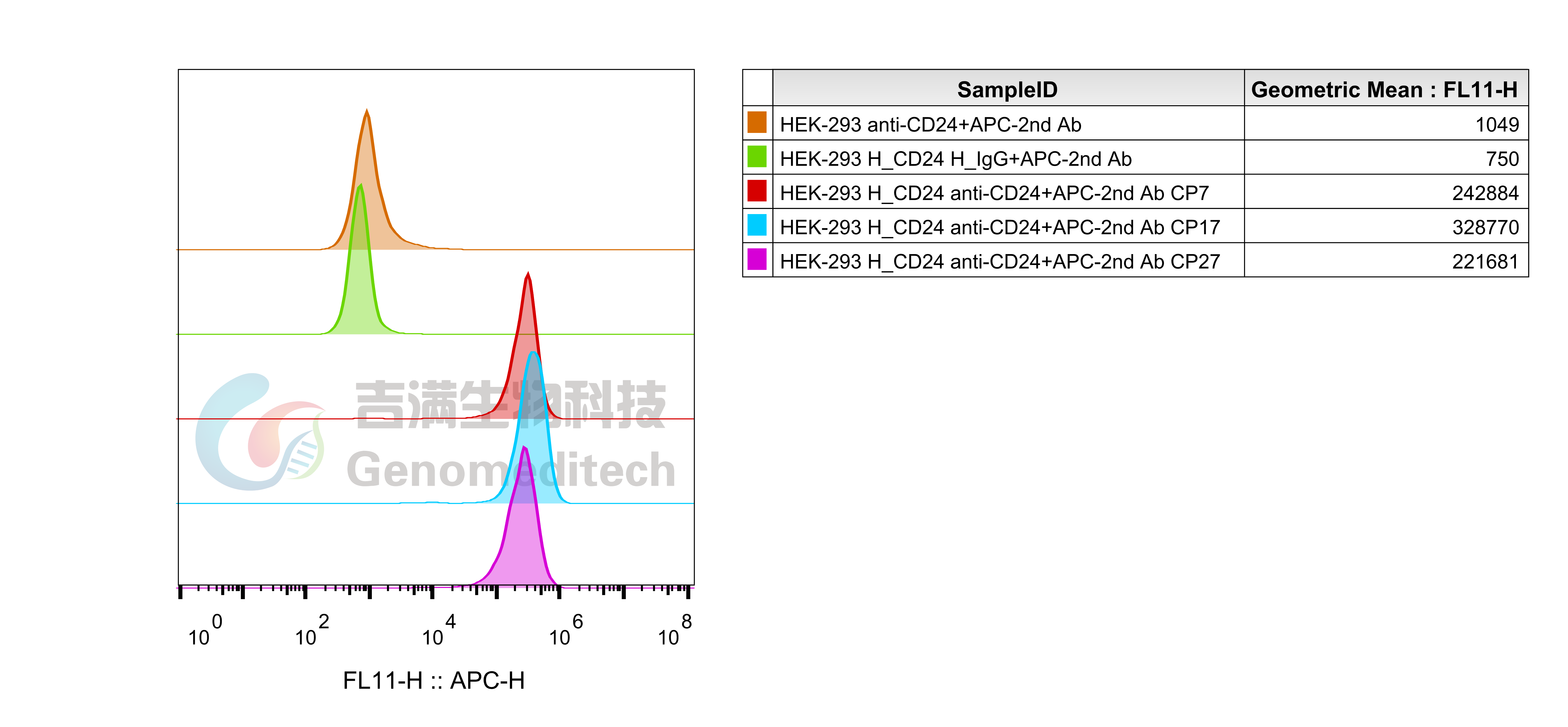 基于HEK-293细胞,使用慢病毒技术构建的稳定表达H_CD24的单克隆细胞系。