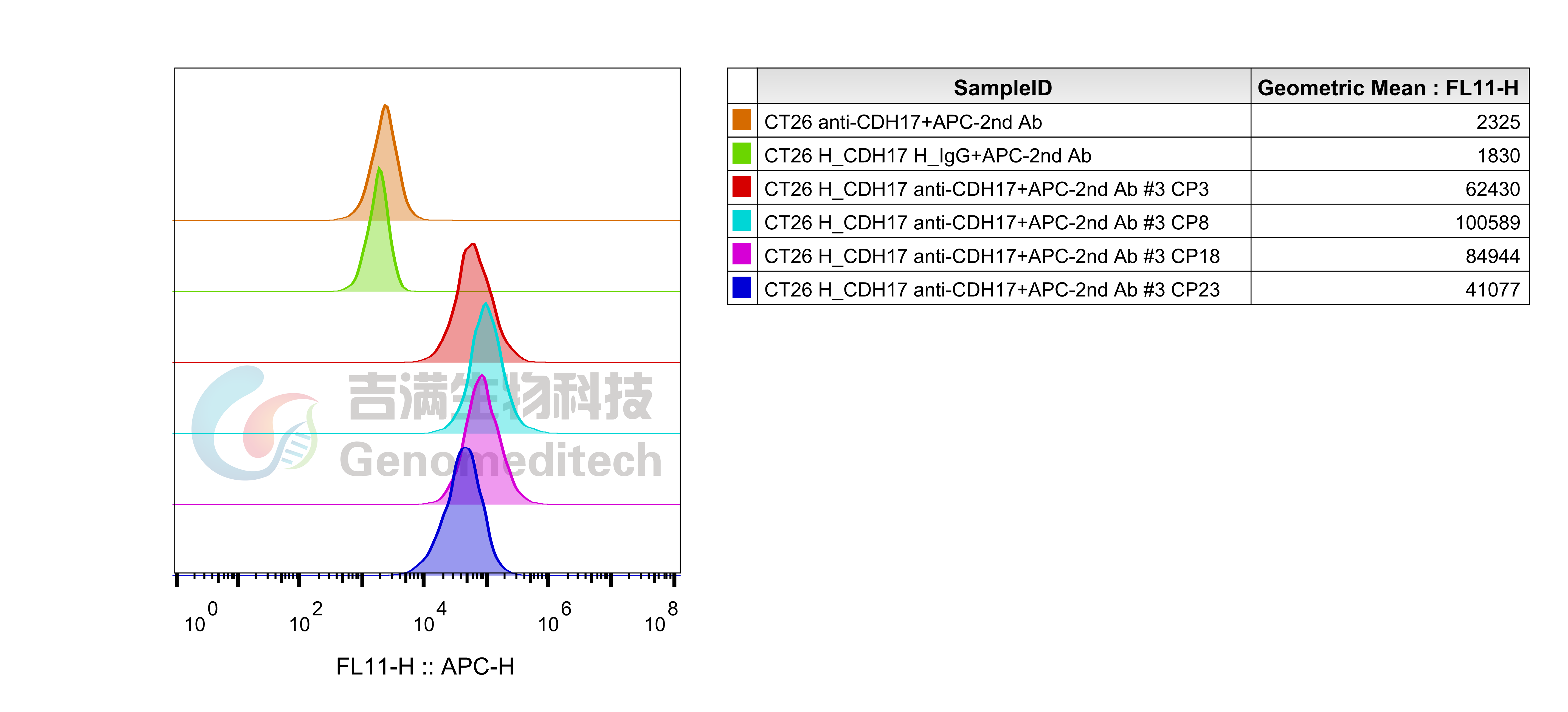 基于CT26细胞,使用慢病毒技术构建的稳定表达H_CDH17的单克隆细胞系。