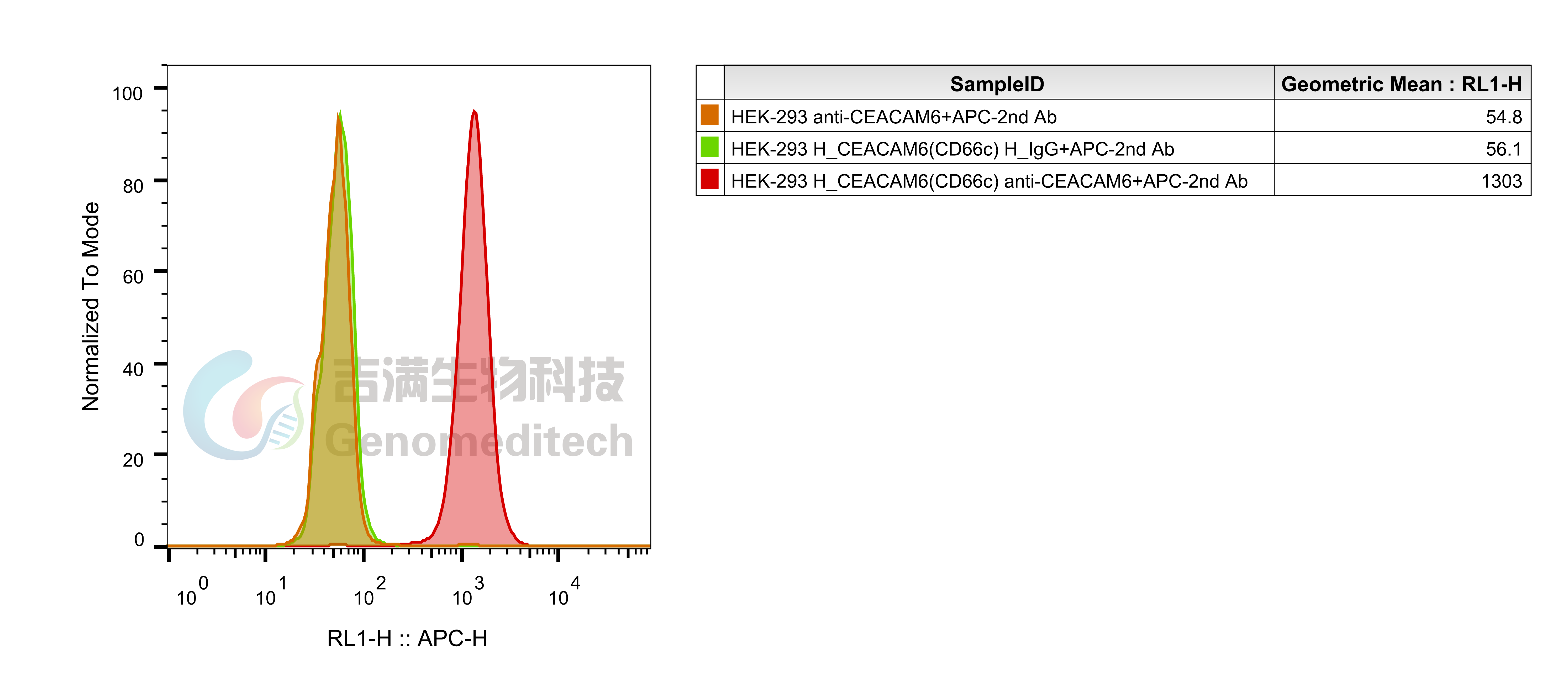 基于HEK-293细胞,使用慢病毒技术构建的稳定表达H_CEACAM6(CD66c)的单克隆细胞系。