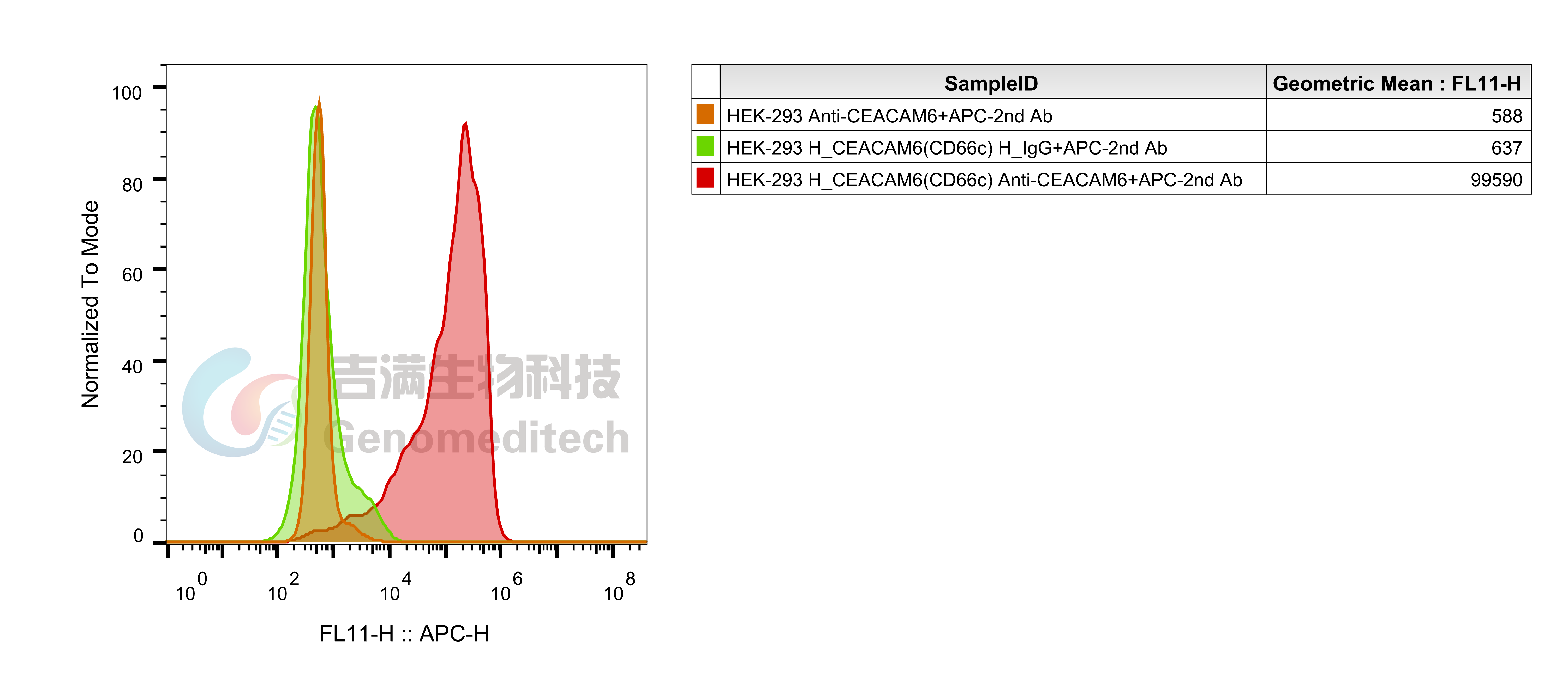 基于HEK-293细胞,使用慢病毒技术构建的稳定表达H_CEACAM6(CD66c)的单克隆细胞系。