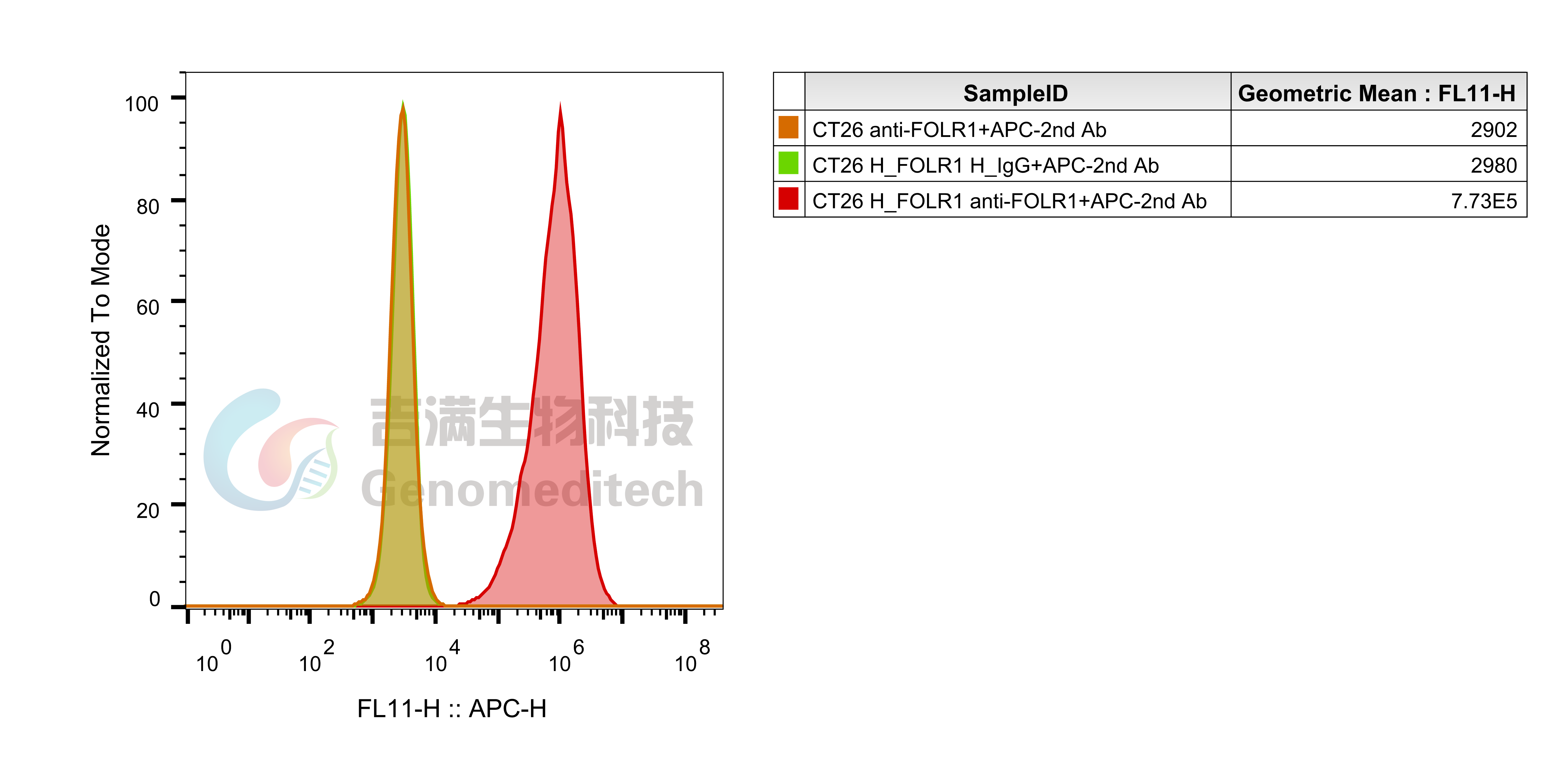 基于CT26细胞,使用慢病毒技术构建的稳定表达H_FOLR1的单克隆细胞系。