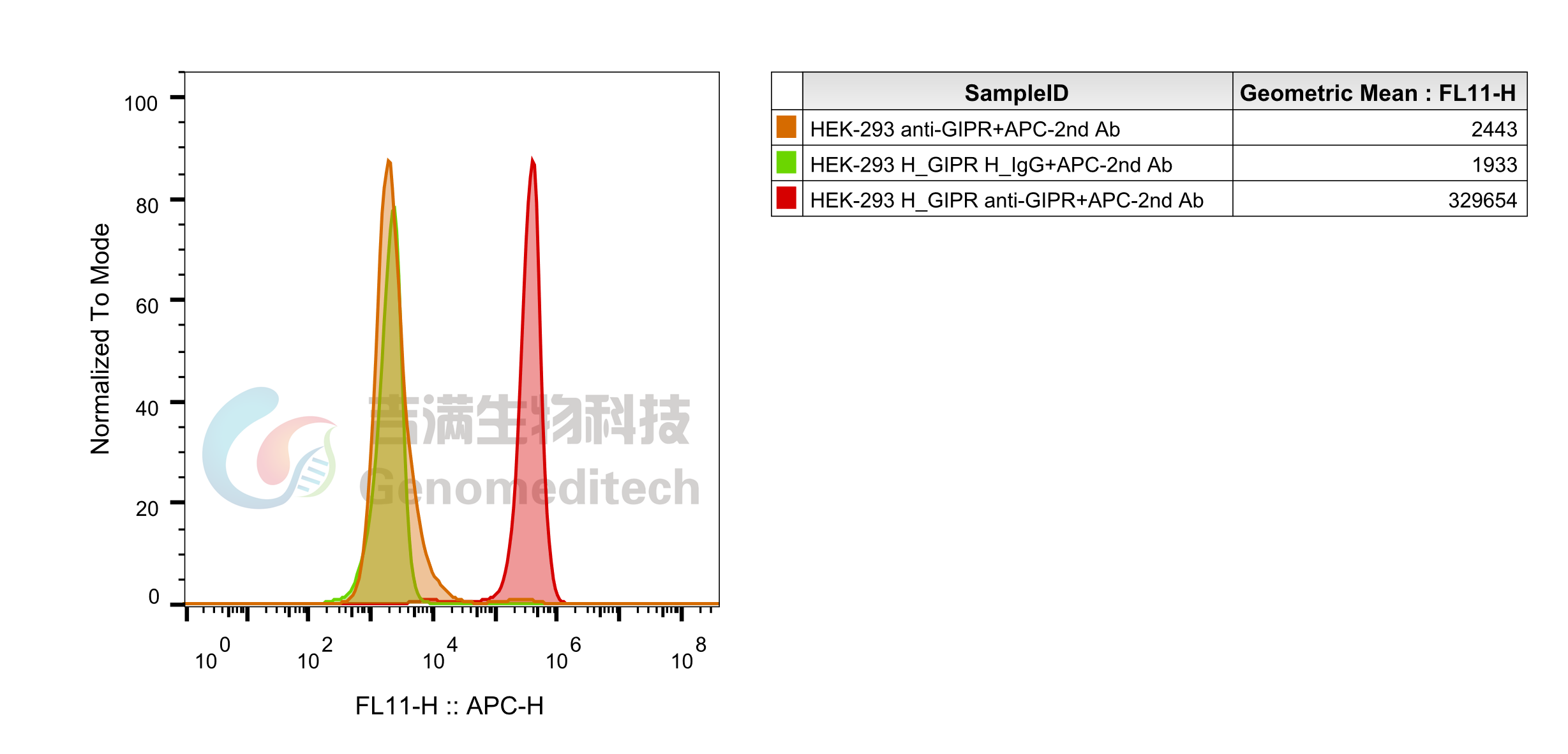 基于HEK-293细胞,使用慢病毒技术构建的稳定表达H_GIPR的单克隆细胞系。