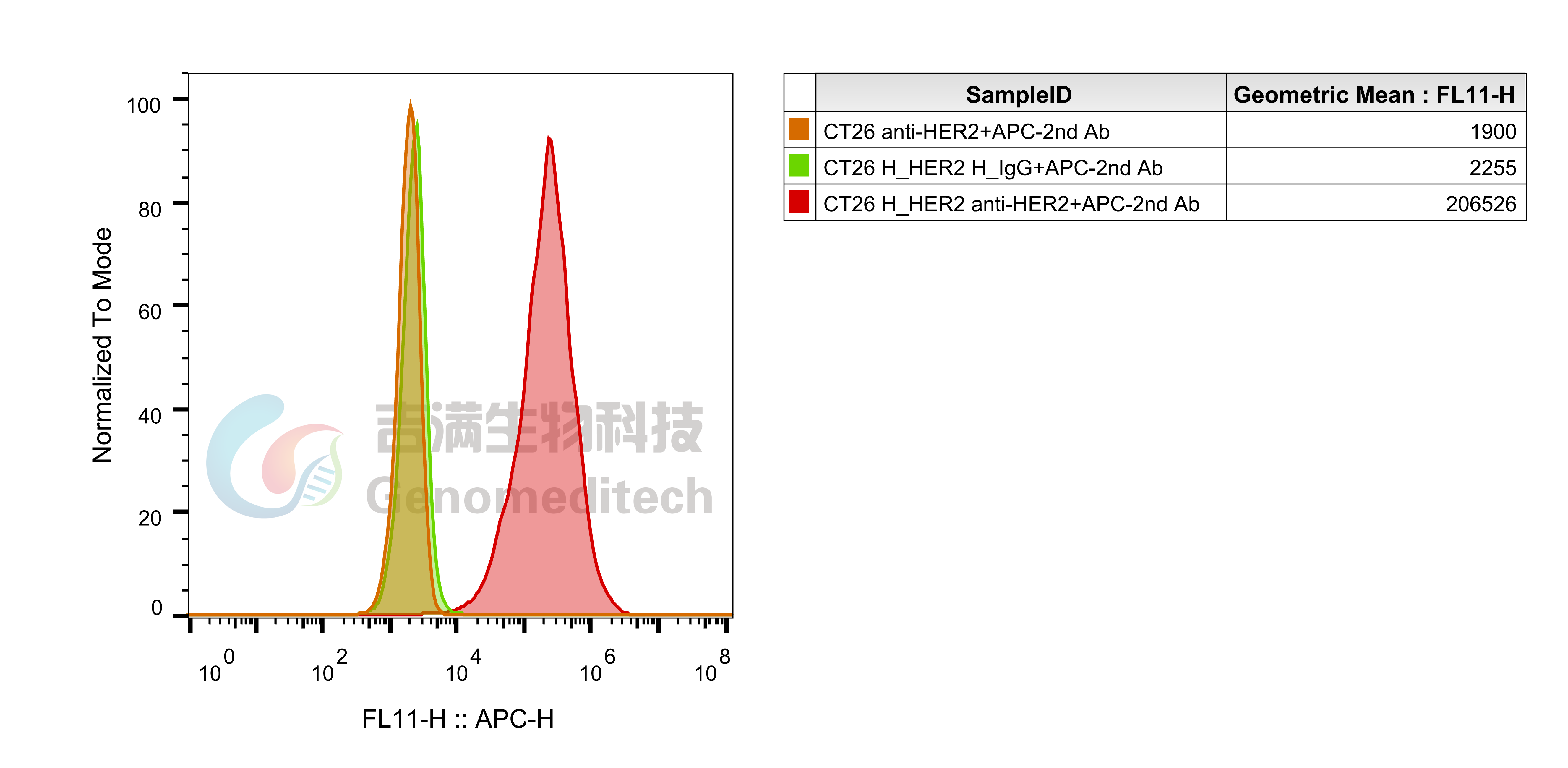 基于CT26细胞,使用慢病毒技术构建的稳定表达H_HER2(ERBB2)的单克隆细胞系。