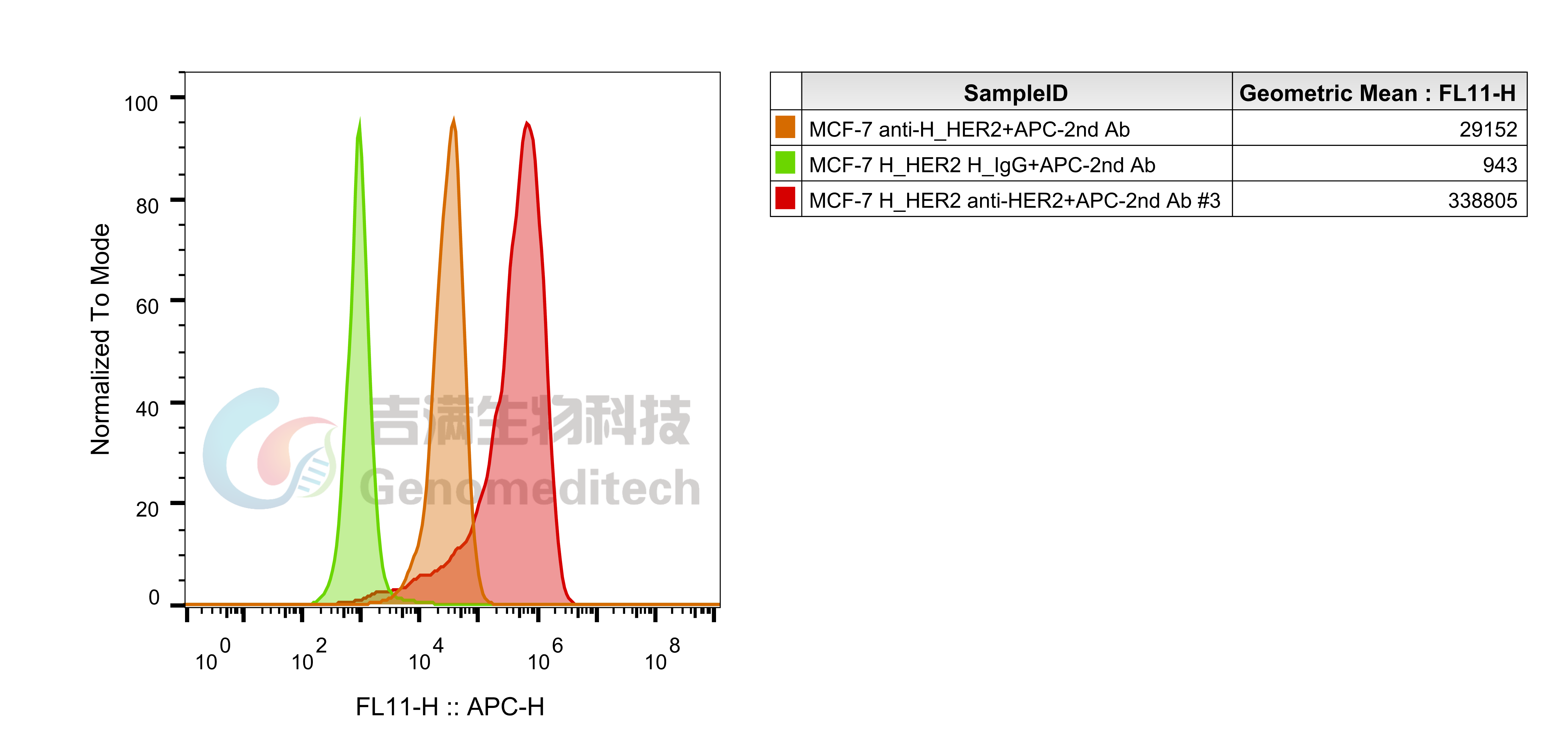 基于MCF-7细胞,使用慢病毒技术构建的稳定表达H_HER2的单克隆细胞系。