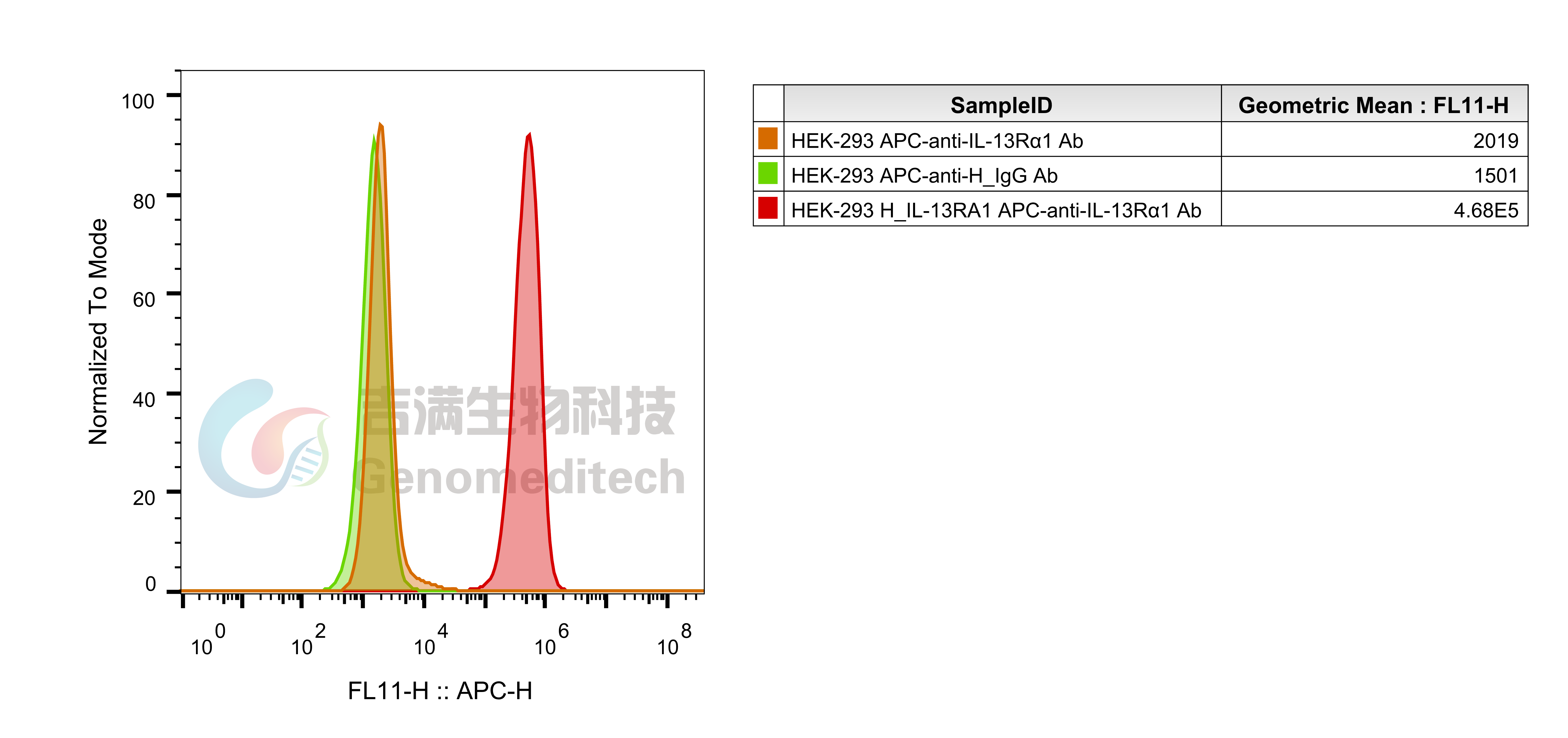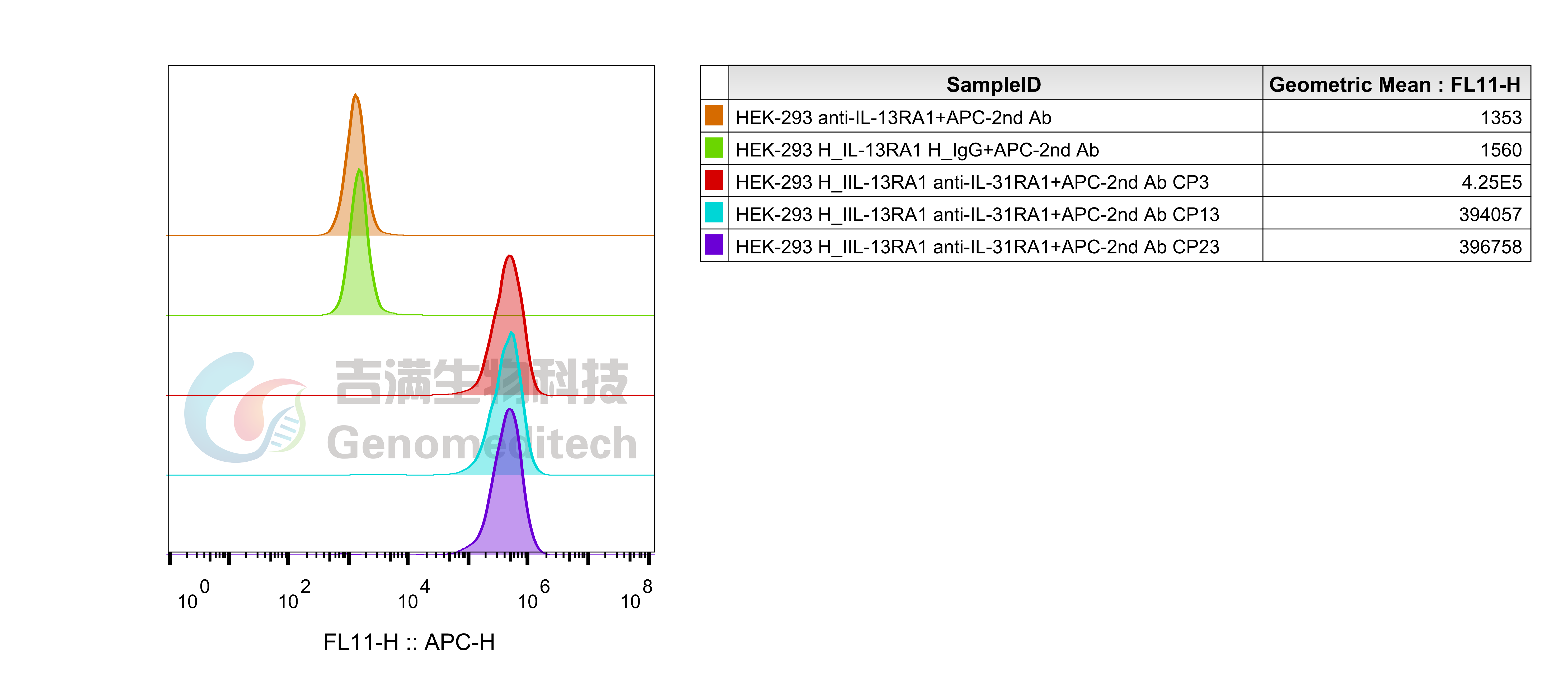 基于HEK-293细胞,使用慢病毒技术构建的稳定表达H_IL-13RA1的单克隆细胞系。