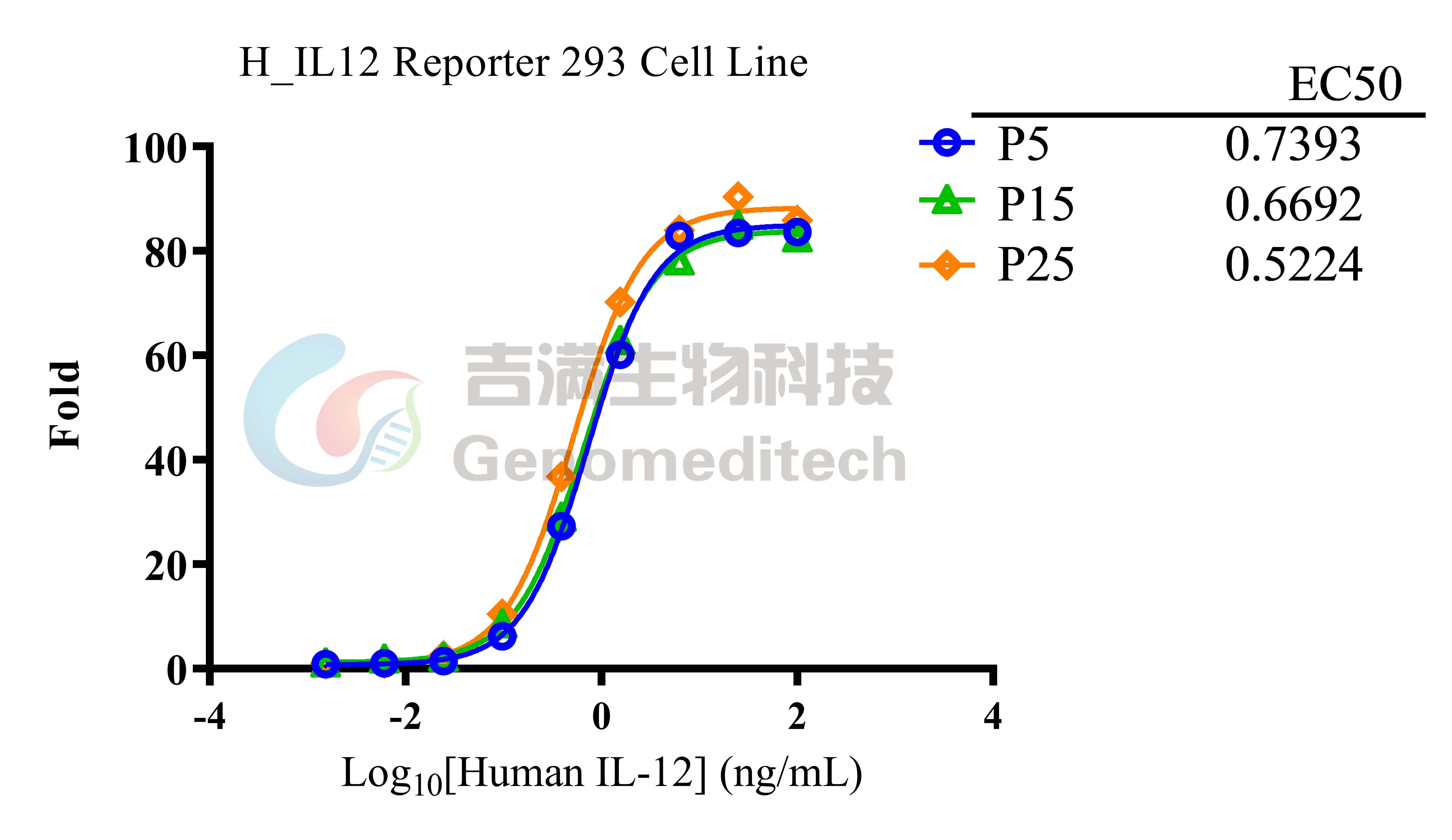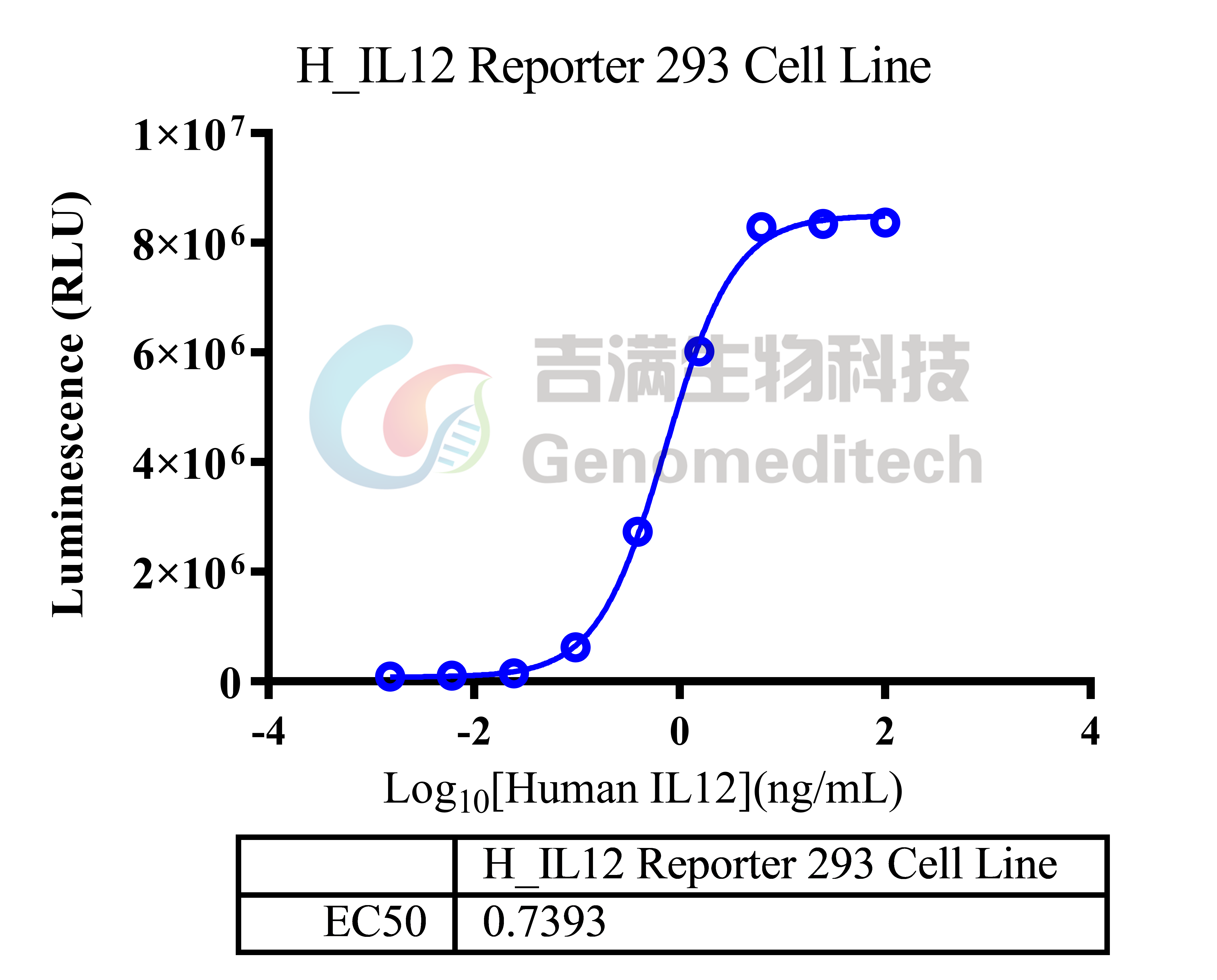 | 产品编号:GM-C19224 产品名称:H_IL12 Reporter 293 Cell Line 白细胞介素 12 ( IL-12 ) 是一种白细胞介素,由树突状细胞、巨噬细胞、中性粒细胞和人 B淋巴母细胞( NC-37 ) 响应抗原刺激而自然产生。IL-12 属于白介素 12 家族。IL-12 家族的独特之处在于包含唯一的异二聚体细胞因子,其中包括 IL-12、IL-23、IL-27和IL-35。 IL-12 是由两个独立的基因IL-12A (p35) 和IL-12B (p40)编码的异二聚体细胞因子。 IL-12受体是异源二聚体,由 IL-12Rβ1和IL-12Rβ2组成。三者在细胞膜上结合,IL-12、IL-12Rβ1和IL-12Rβ2结合形成的受体复合物的可以促进受体相关激酶的磷酸化以及IL-12Rβ2 细胞质尾部的信号转导结合位点的磷酸化。此IL-12Rβ2 结合位点的磷酸化导致下游信号通路磷酸化并易位进入细胞核。 吉满生物H_IL12 Reporter 293 Cell Line报告基因细胞系。当IL-12与受体结合成复合物体,激活下游信号通路。从而激活荧光素酶(Luciferase)的表达。Luciferase读值即代表信号通路的激活效果,因此可用于IL-12相关药物的体外效果评价。 | ![]() |