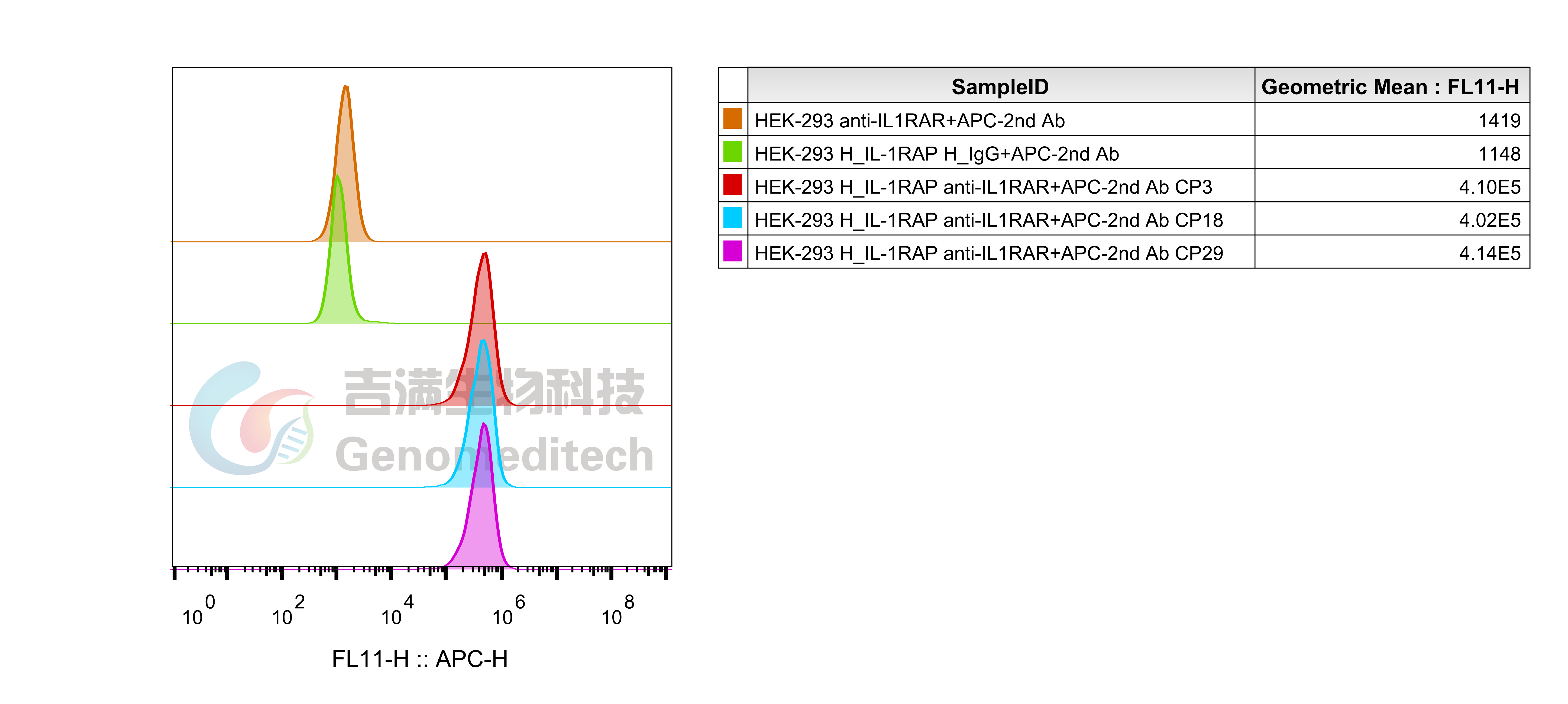 基于HEK293细胞,使用慢病毒技术构建的稳定表达H_IL1RAP的单克隆细胞系。