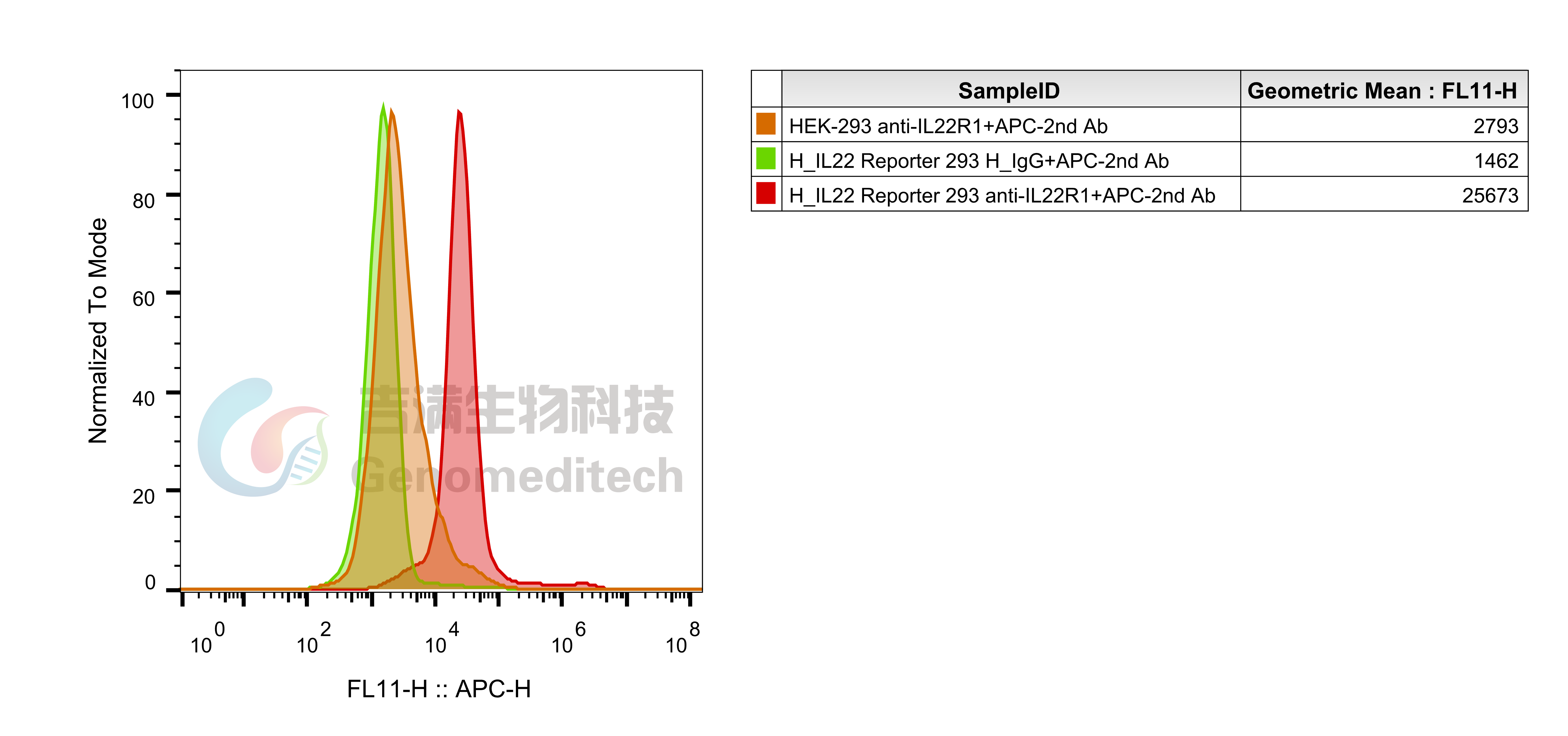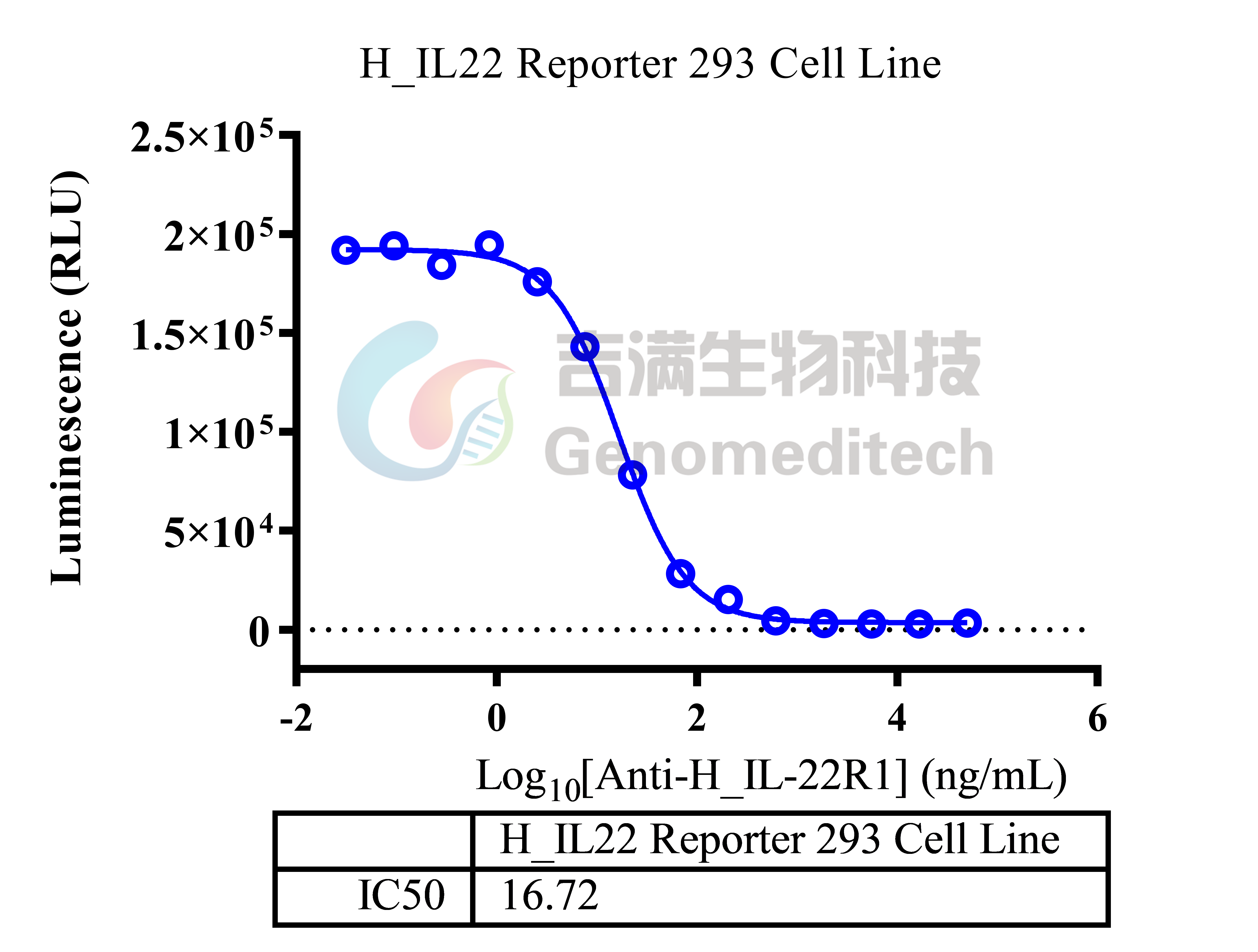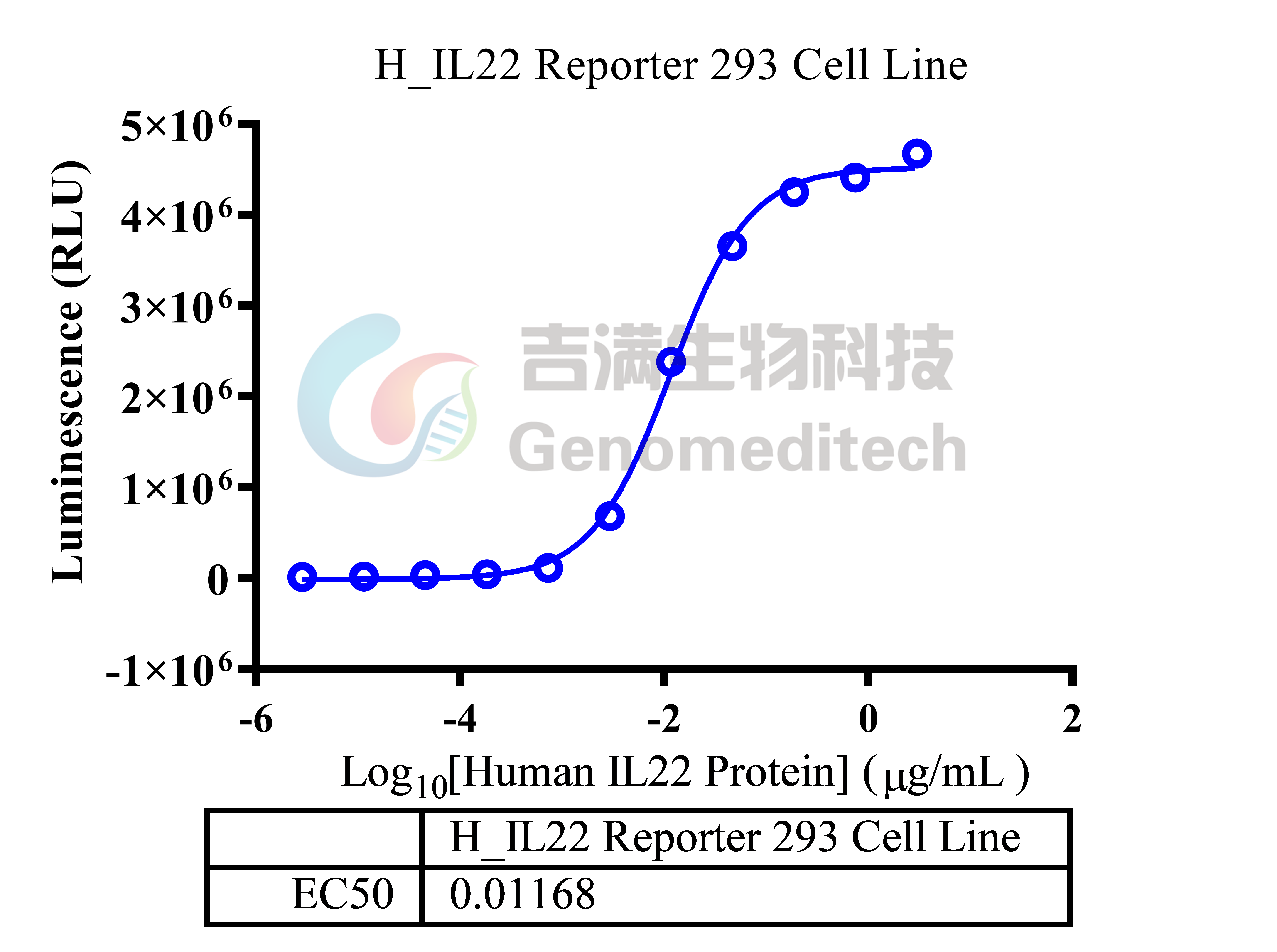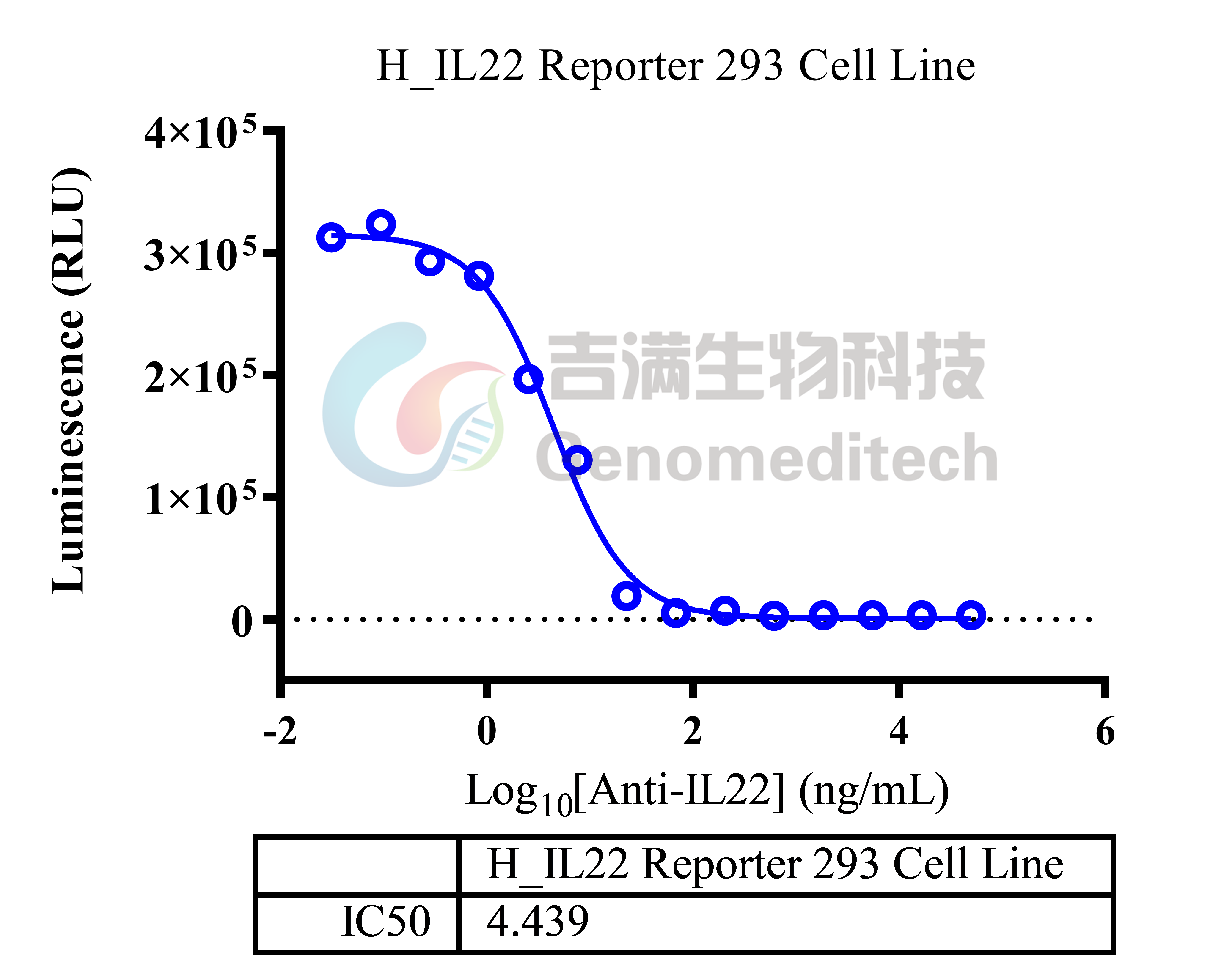 | 产品编号:GM-C19682 产品名称:H_IL22 Reporter 293 Cell Line IL-22在2000年发现,是IL-10家族一员。IL-22基因编码179氨基酸,移除33个氨基酸的信号肽后,是146个氨基酸的分泌型IL-22。IL-22与由IL-22R1和IL-10R2组成的异源二聚体跨膜受体复合物结合,激活了JAK1-STATs通路激活,产生相应的效应功能。此外还有一个分泌型受体IL-22BP,通过结合IL-22阻断其信号。IL-22不直接调节白细胞的功能,而是靶向一线防御系统的细胞,例如呼吸上皮细胞。其作用可以是免疫调节或促炎反应。IL-22还可能通过上调肺部的趋化因子来发挥其防御作用,并防止肺部在炎症急性期(例如真菌感染,肺炎,过敏性气道炎症的初始阶段等)中遭受损害。 吉满生物H_IL22 Reporter 293 Cell Line细胞系是基于JAK-STAT信号通路构建的一种Luciferase报告基因细胞系。当IL-22结合IL-22Rα1、IL10Rβ受体后,激活STATs信号通路,从而激活荧光素酶(Luciferase)的表达。Luciferase读值即代表信号通路的激活效果,因此可用于IL-22相关药物的体外效果评价。 | ![]() |