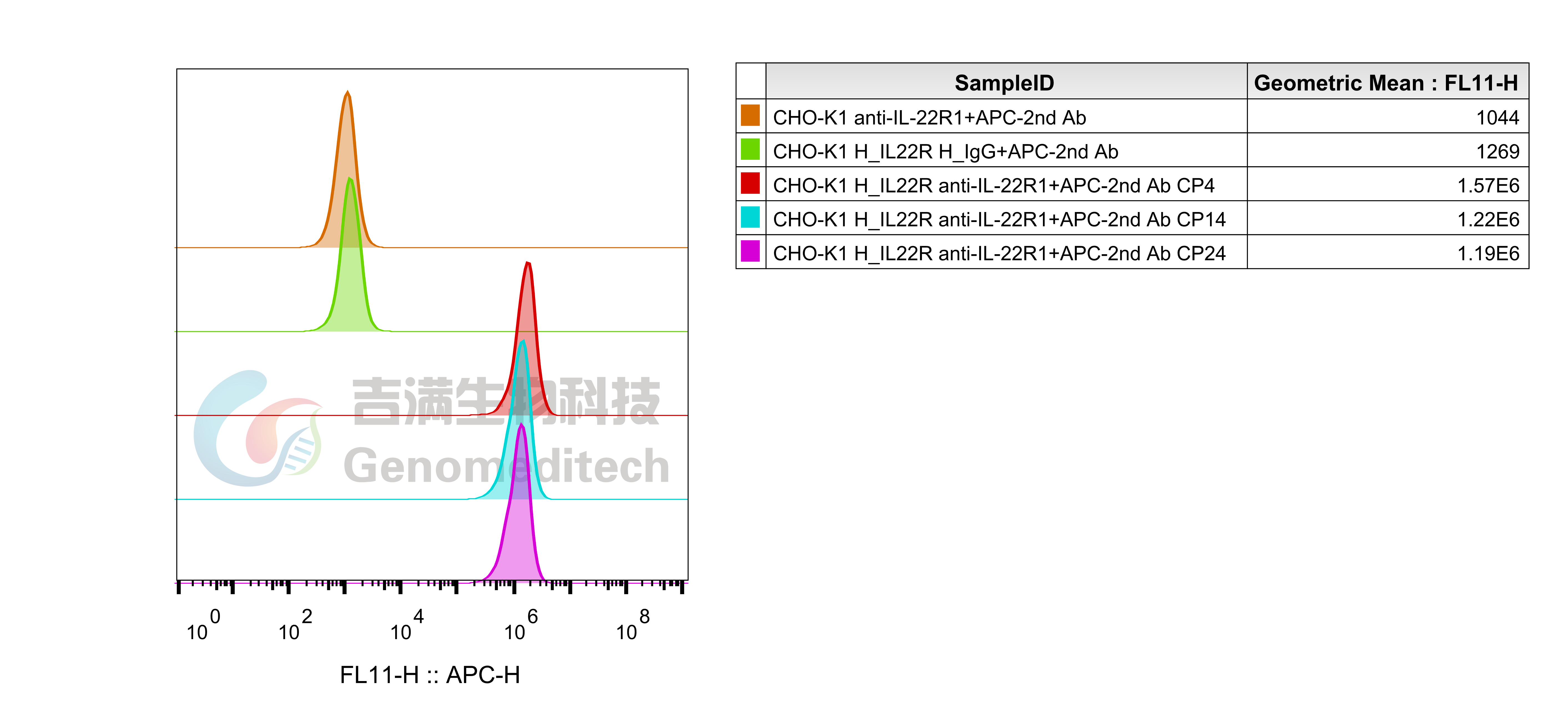 基于CHO-K1细胞,使用慢病毒技术构建的稳定表达H_IL22R的单克隆细胞系。