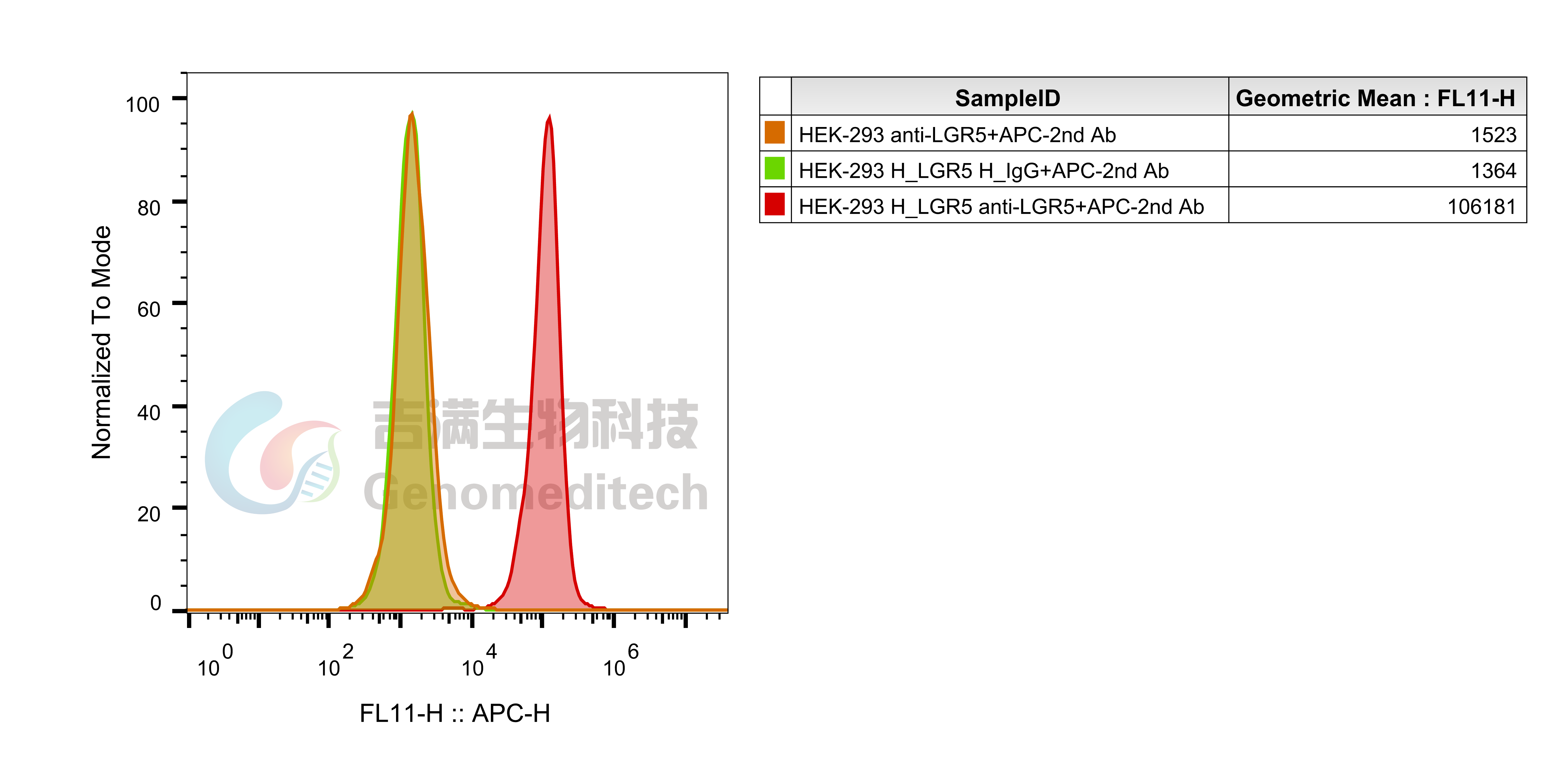 基于HEK-293细胞,使用慢病毒技术构建的稳定表达H_LGR5的单克隆细胞系。