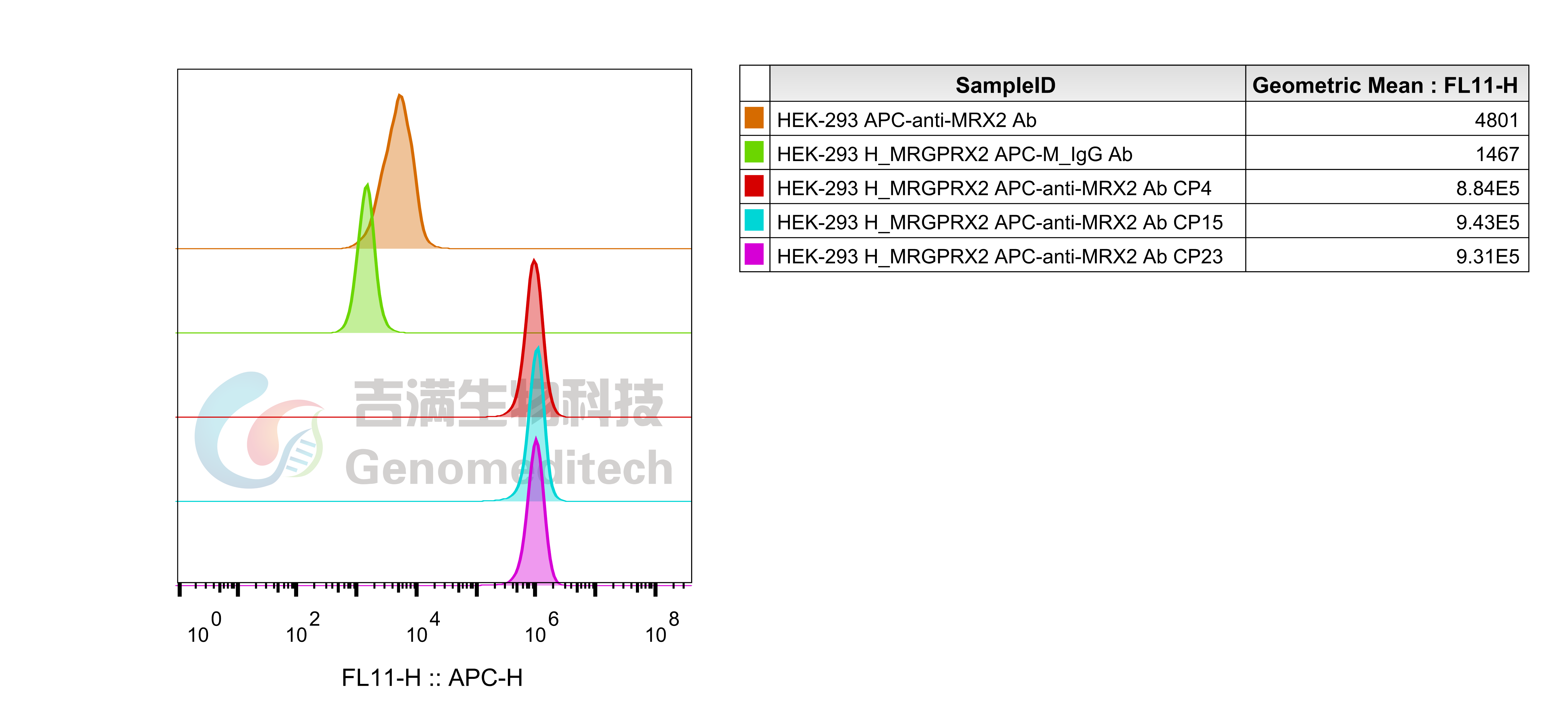 基于HEK293细胞,使用慢病毒技术构建的稳定表达H_MRGPRX2的单克隆细胞系。