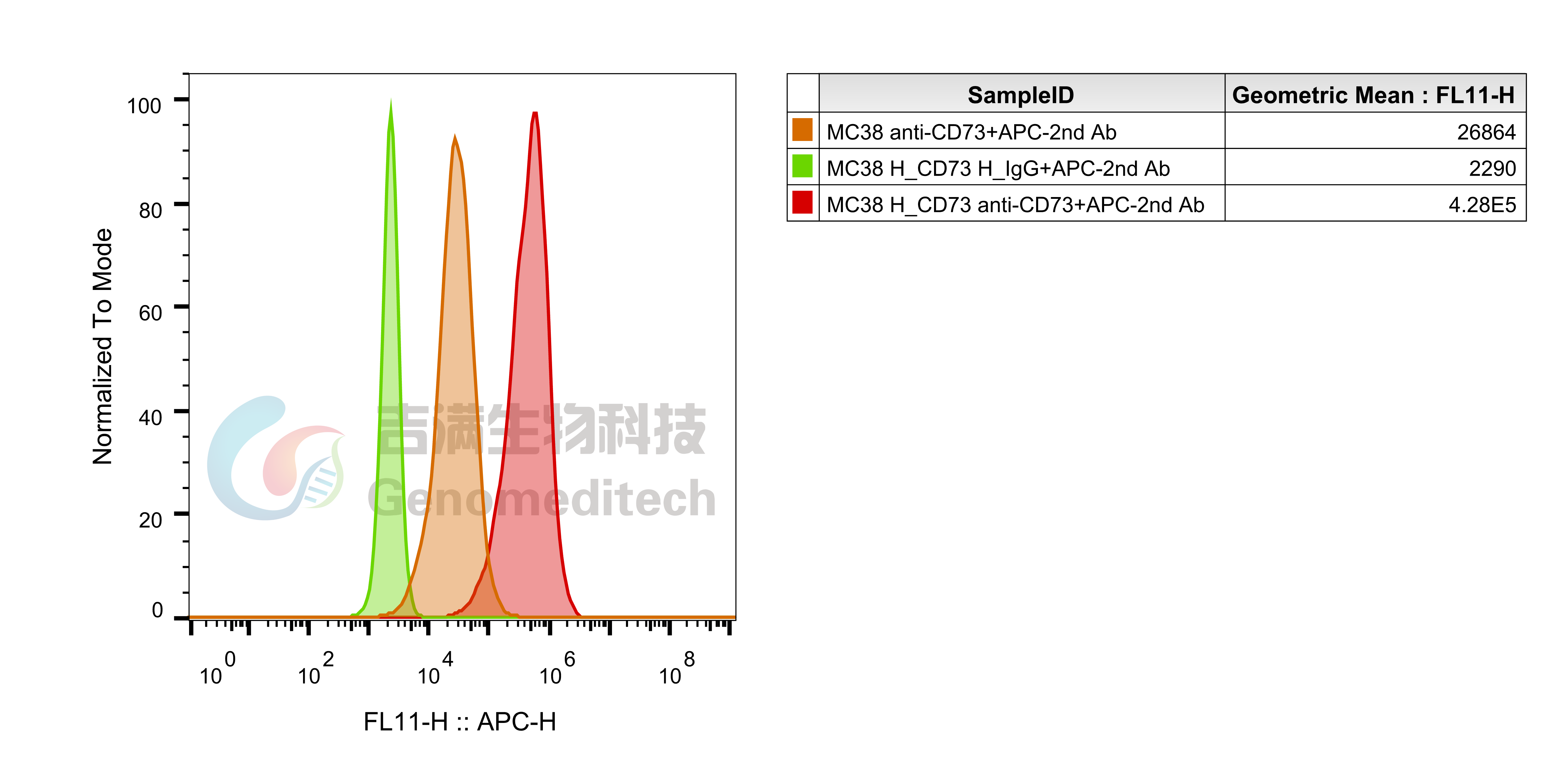 基于MC38细胞,使用慢病毒技术构建的稳定表达H_NT5E(CD73)的单克隆细胞系。