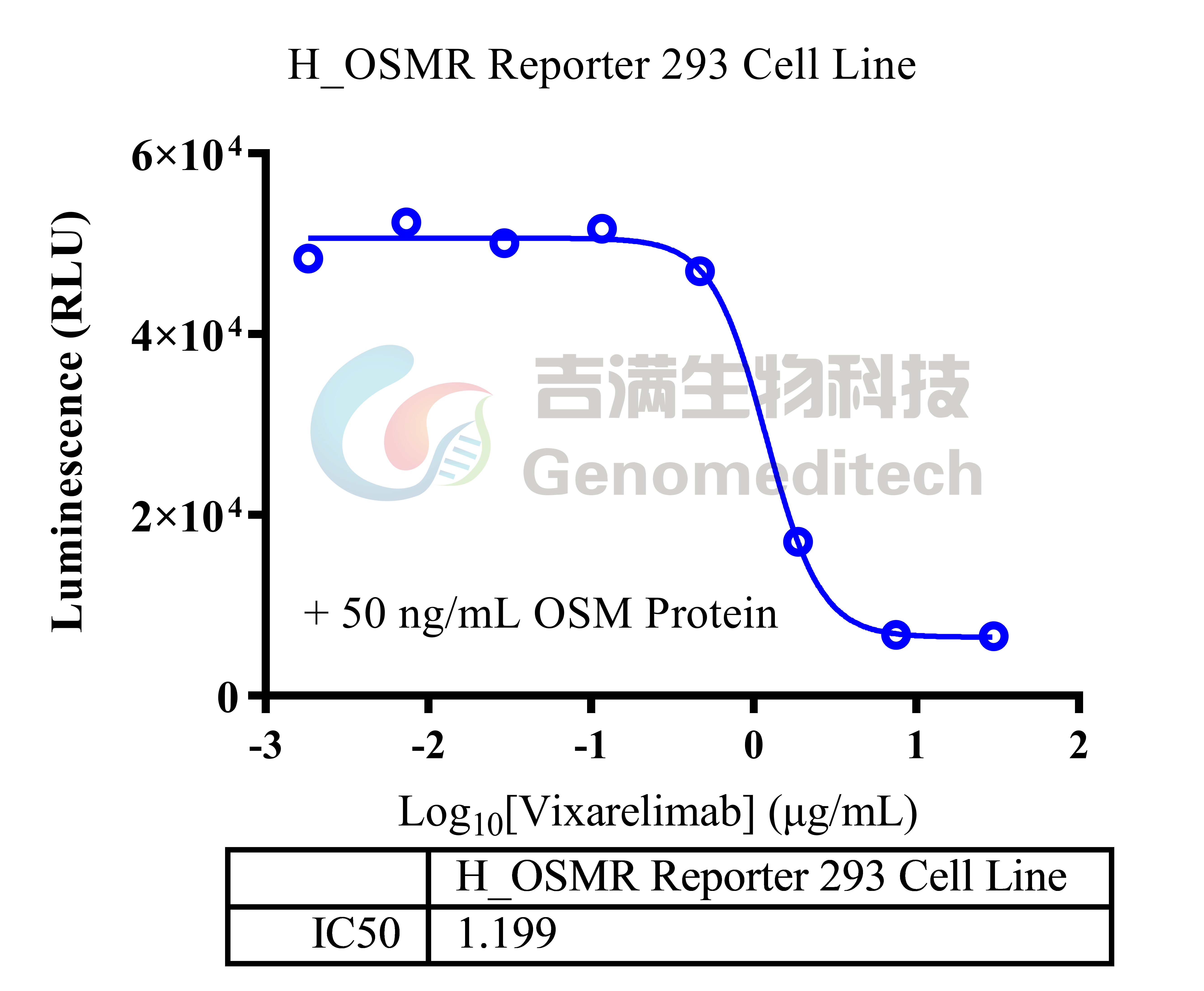 | 产品编号:GM-C41954 产品名称:H_OSMR Reporter 293 Cell Line OSMR(Oncostatin M Receptor)是一种细胞表面跨膜蛋白,属于I型细胞因子受体家族。OSMR主要作为白细胞介素-6家族成员Oncostatin M(OSM)的受体,参与多种信号通路的调节。在生理和病理条件下,OSMR广泛表达于多种组织细胞,参与炎症、细胞分化、增殖和凋亡等多种生物学过程。研究发现,OSMR不仅与免疫应答相关,还在多种肿瘤的发生及进展中发挥重要作用,因此逐渐成为肿瘤以及免疫相关疾病研究的热点靶点。检测和分析OSMR表达或功能,对于揭示其在疾病中的作用机制具有重要意义。 吉满生物H_OSMR Reporter 293 Cell Line报告基因细胞系。当OSM结合受体后,激活下游信号通路,通过加入特定的拮抗型抗体,阻断由此激活的下游信号通路,随后,通过测定荧光信号确定荧光素酶(Luciferase)的表达,间接评估拮抗剂对信号通路的影响程度。因此可用于OSMR及等相关药物的体外效果评价。 | ![]() |