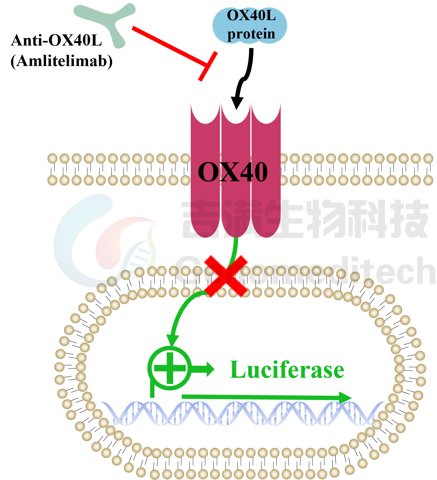 吉满生物H_OX40 Reporter DDX35TM Cell Line报告基因细胞系,是基于OX40信号通路构建的一种Luciferase报告基因细胞系。当 OX40L 蛋白与受体结合后,激活下游信号通路,从而激活荧光素酶(Luciferase)的表达。Luciferase读值即代表信号通路的激活效果,因此可用于OX40相关药物的体外效果评价。细胞通过多轮单克隆筛选,是具有高稳定特性同时兼具高灵敏性、高倍率性的优选单克隆。可以满足客户批量建库、放行实验等标准。