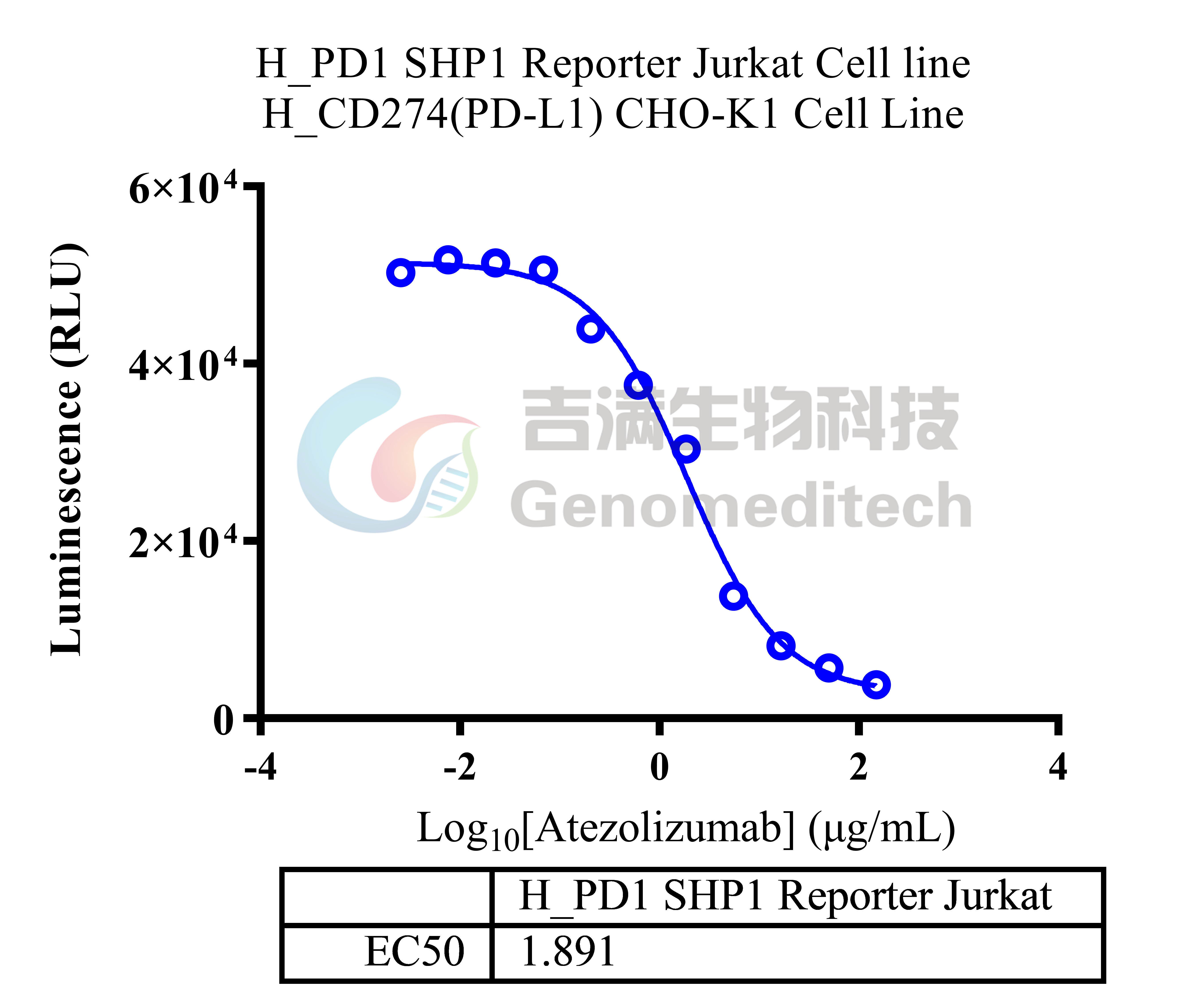 | 产品编号:GM-C42135 产品名称:H_PD1 SHP1 Reporter Jurkat Cell line 程序性死亡受体1(PD‑1,亦称CD279)是一种表达于活化T细胞、B细胞及部分髓系细胞表面的免疫检查点受体,属于Ig超家族,其胞外区与配体PD‑L1/PD‑L2结合后,通过胞内含免疫受体酪氨酸抑制基序(ITIM)与免疫受体酪氨酸开关基序(ITSM)的酪氨酸位点被磷酸化,进而招募含有Src同源2结构域(SH2)的蛋白酪氨酸磷酸酶,尤其是SHP‑2(PTPN11)及在特定情境下的SHP‑1(PTPN6)。SHP‑1主要在造血细胞中高表达,作为负向调节因子通过去磷酸化TCR、BCR及其下游信号分子,抑制PI3K‑AKT、RAS‑MAPK等通路,从而降低细胞活化与效应功能。在肿瘤微环境和慢性感染中,PD‑1与其配体持续作用可通过招募SHP‑1/2抑制T细胞代谢与细胞毒性,导致“耗竭”表型,这一轴线构成免疫逃逸的重要机制。 吉满生物的H_PD1 SHP1 Reporter Jurkat Cell line报告基因细胞系采用荧光素酶片段互补(EFC)技术进行检测。在受体被配体结合或抗体交联激活后,酪氨酸残基发生磷酸化,从而特异性招募含 SH2 结构域的磷酸酶 Src homology region 2 domain‑containing phosphatase‑1(SHP‑1)。随后被招募的 SHP‑1对多种关键信号分子进行去磷酸化,抑制 T 细胞受体(T cell receptor, TCR)等活化信号通路的传导,最终导致细胞活化受抑。当加入荧光素酶底物后,催化底物反应,从而产生可检测的发光信号。当加入阻断抗体后可以抑制信号。因此可用于相关药物的体外效果评价。 | ![]() |