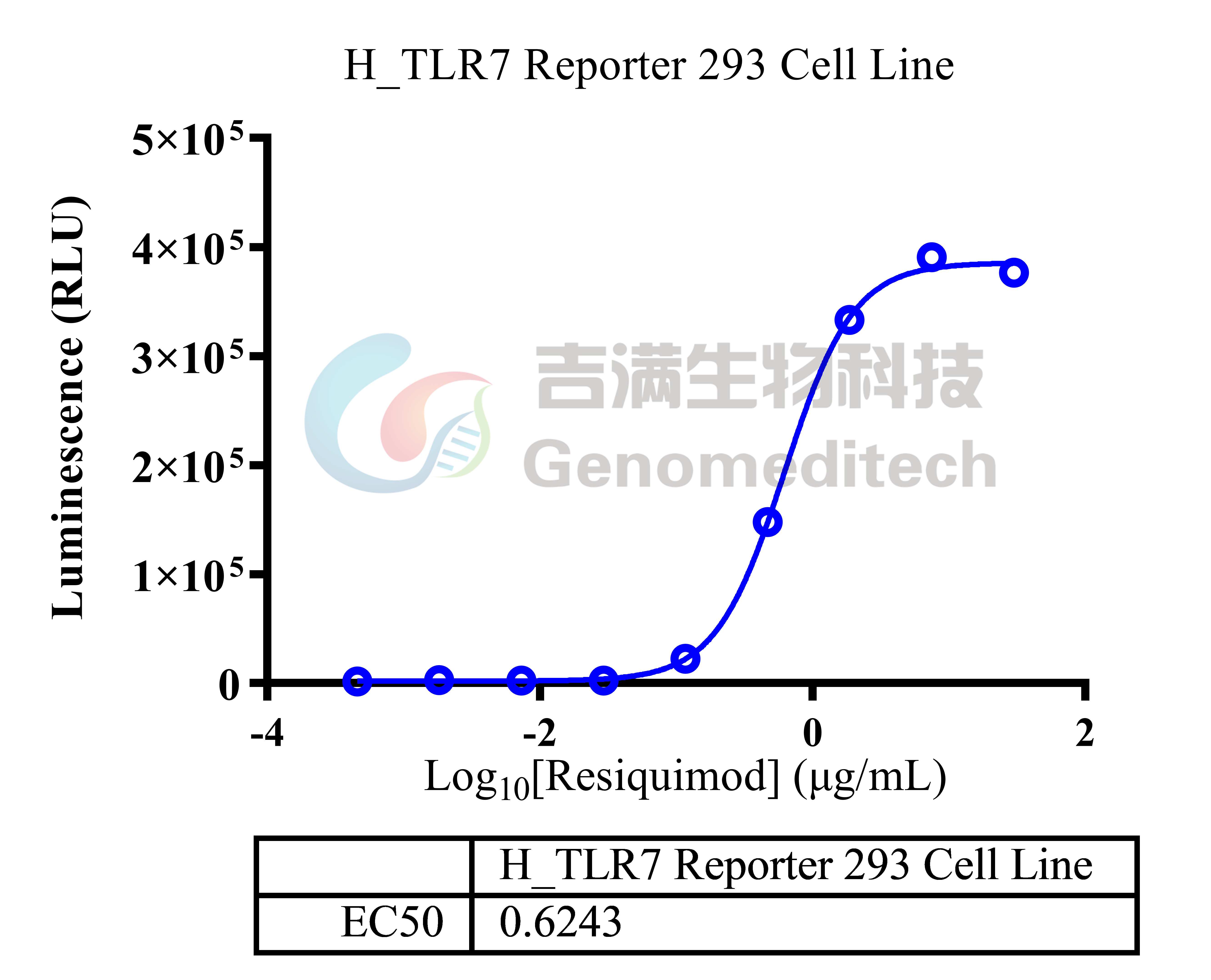 | 产品编号:GM-C15426 产品名称:H_TLR7 Reporter 293 Cell Line Toll样受体(Toll-like receptors, TLR)是参与非特异性免疫(天然免疫)的一类重要蛋白质分子,也是连接非特异性免疫和特异性免疫的桥梁。激活TLR,可以诱导MyD88或TRIF依赖的信号通路,激活信号,诱导细胞因子和趋化因子分泌,激活先天免疫反应和介导获得性免疫反应的激活,因此将TLR激动剂应用到肿瘤免疫治疗中,有望将冷肿瘤变热,解决单免疫检查点抑制剂应答率低的问题,提高免疫治疗效果。 吉满生物H_TLR7 Reporter 293 Cell Line报告基因细胞系,是基于TLR7信号通路构建的一种Luciferase报告基因细胞系。该细胞稳定表达TLR7基因及Luciferase报告基因,可用于针对TLR7激动剂的体外激活效果评价。 | ![]() |