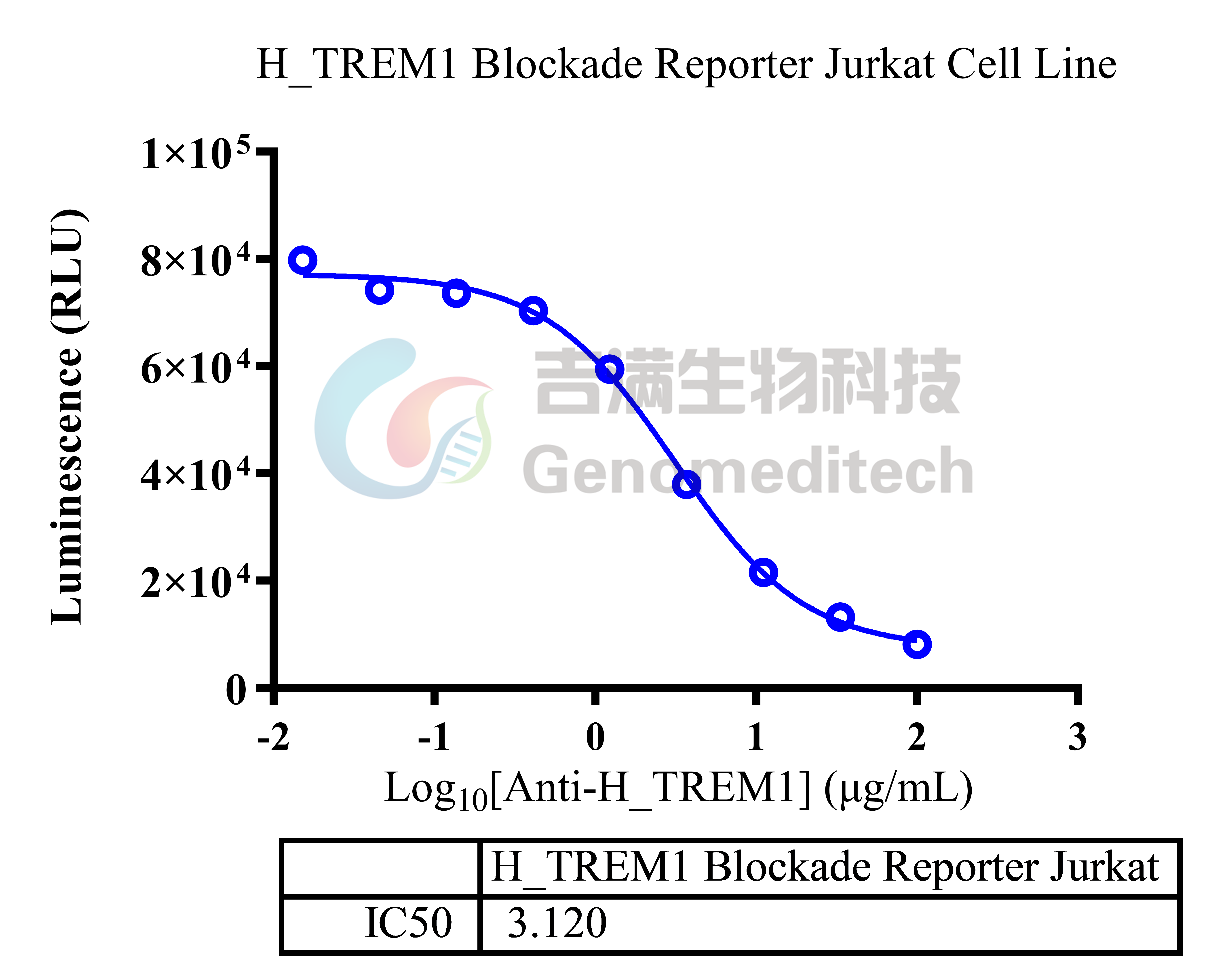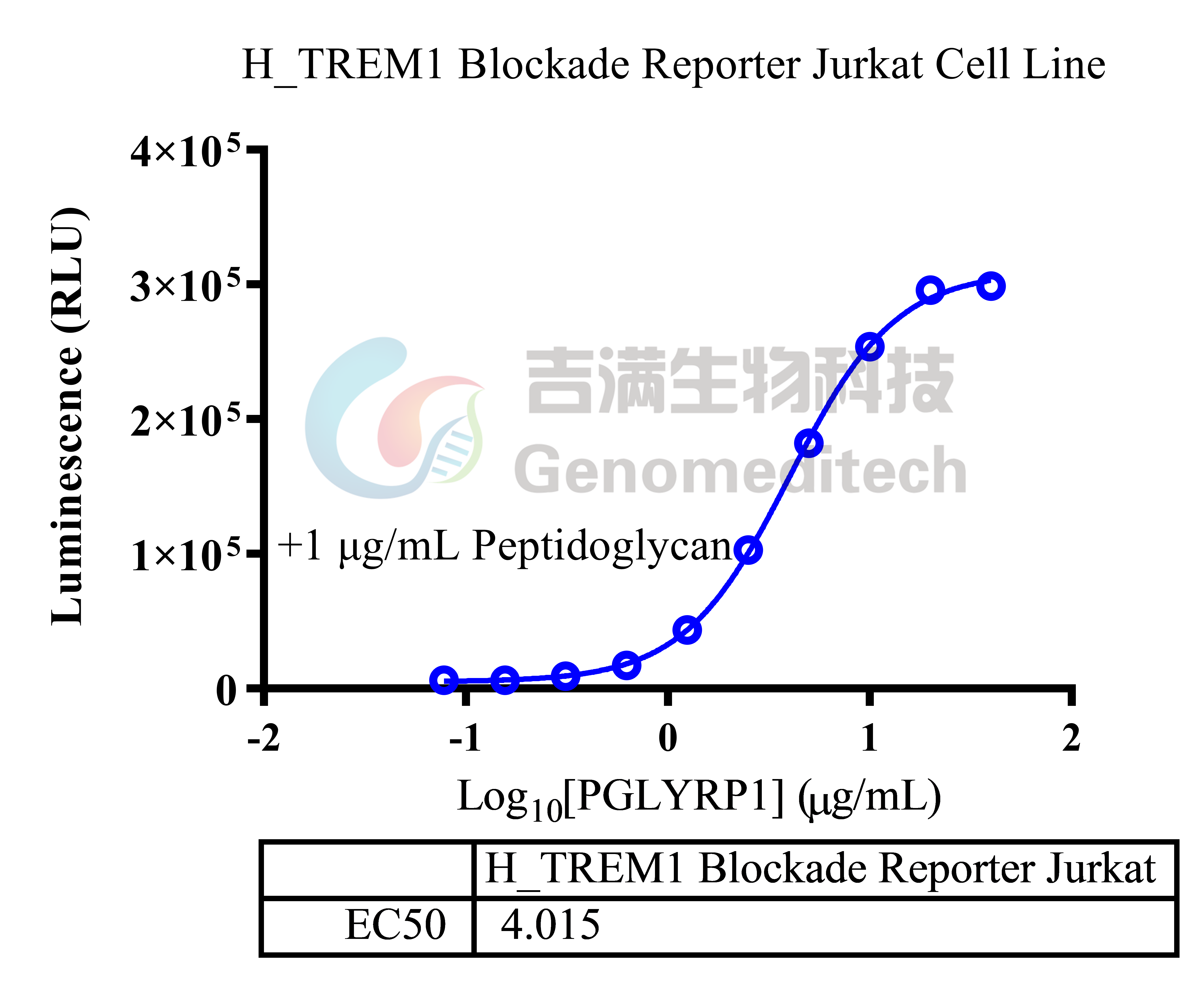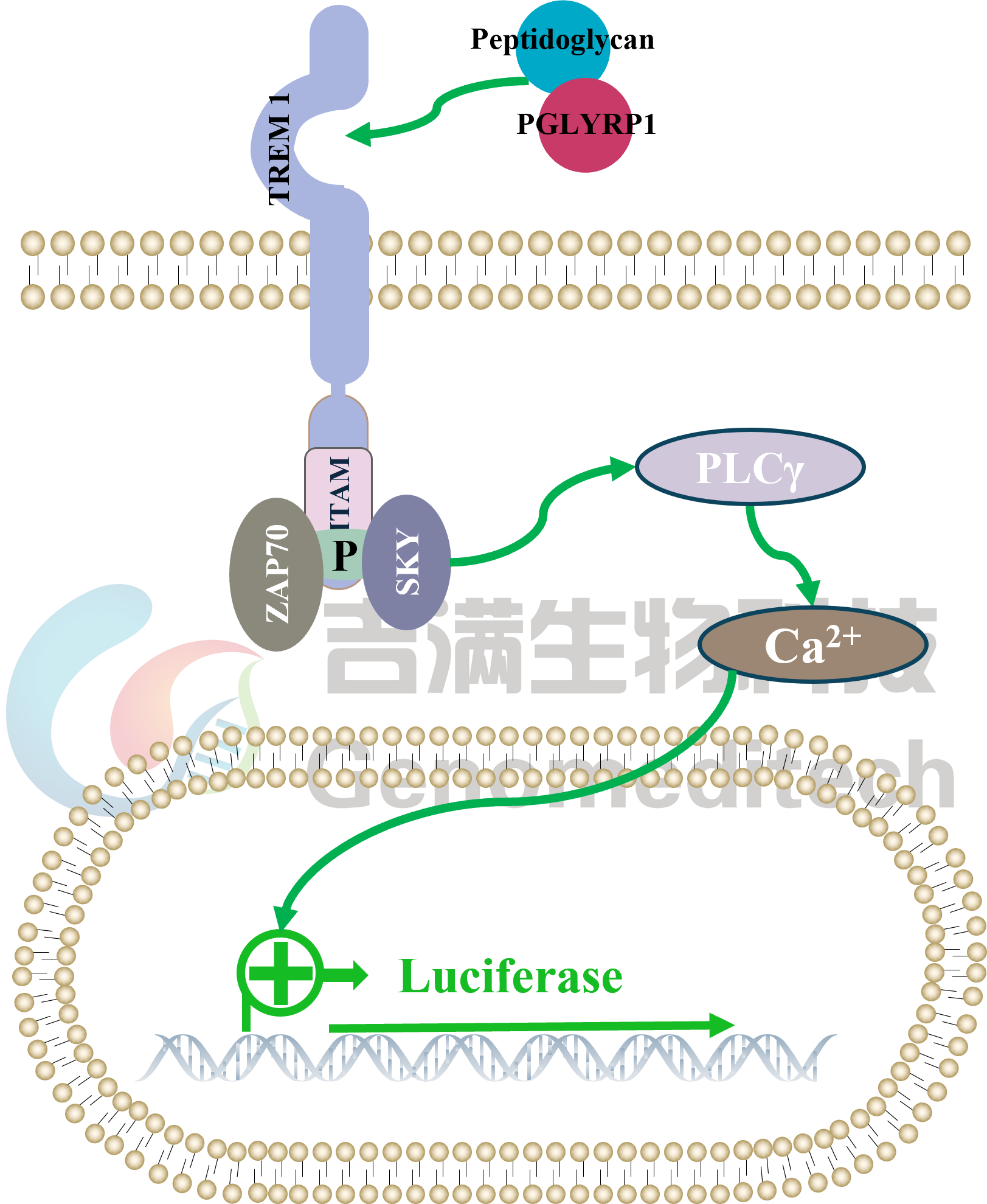 | 产品编号:GM-C15720 产品名称:H_TREM1 Blockade Reporter Jurkat Cell Line 在骨髓细胞上表达的触发受体1 (TREM-1) 是一种由TREM1基因编码的蛋白质。单核细胞/巨噬细胞和中性粒细胞介导的炎症反应可被多种受体刺激产生,包括G蛋白偶联受体(例如,FPR1)、Fc受体、CD14、Toll样受体(TLR;例如,TLR4)和细胞因子受体。TREM-1通过进一步增加促炎细胞因子的产生来放大toll样受体诱导的炎症。 TREM-1与同型二聚体 DAP12结合,导致其上的免疫受体酪氨酸活化基序(ITAM) 被酪氨酸激酶磷酸化。从而募集脾酪氨酸激酶SYK和ZAP70,从而激活PLC通路,提高细胞内Ca2+浓度,诱导抗炎细胞因子反应,导致转录因子被激活。 吉满生物H_TREM1 Blockade Reporter Jurkat Cell Line报告基因细胞系,是基于PLC信号通路构建的一种Luciferase报告基因细胞系。通过转录因子的激活,从而激活荧光素酶(Luciferase)的表达。Luciferase读值即代表信号通路的激活效果,因此可用于TREM1相关药物的体外效果评价。 | ![]() |