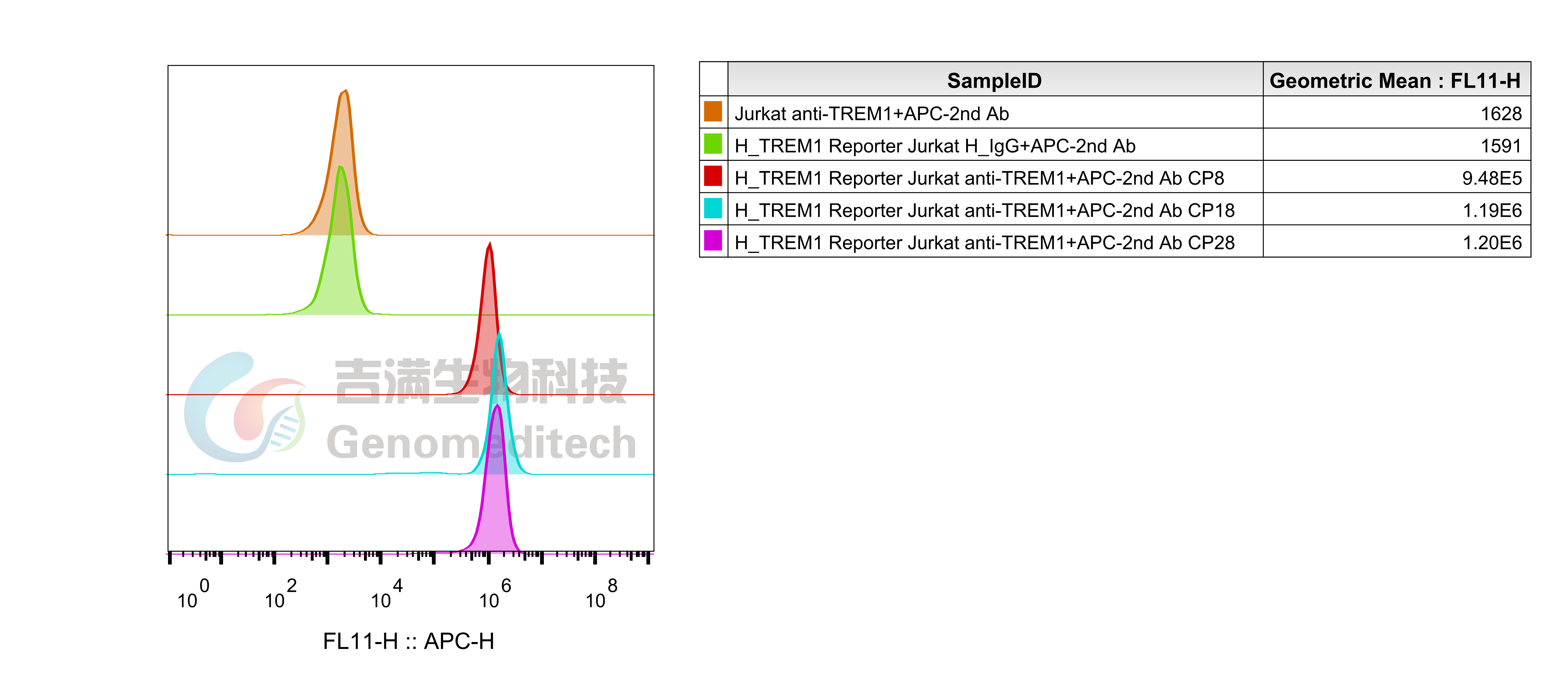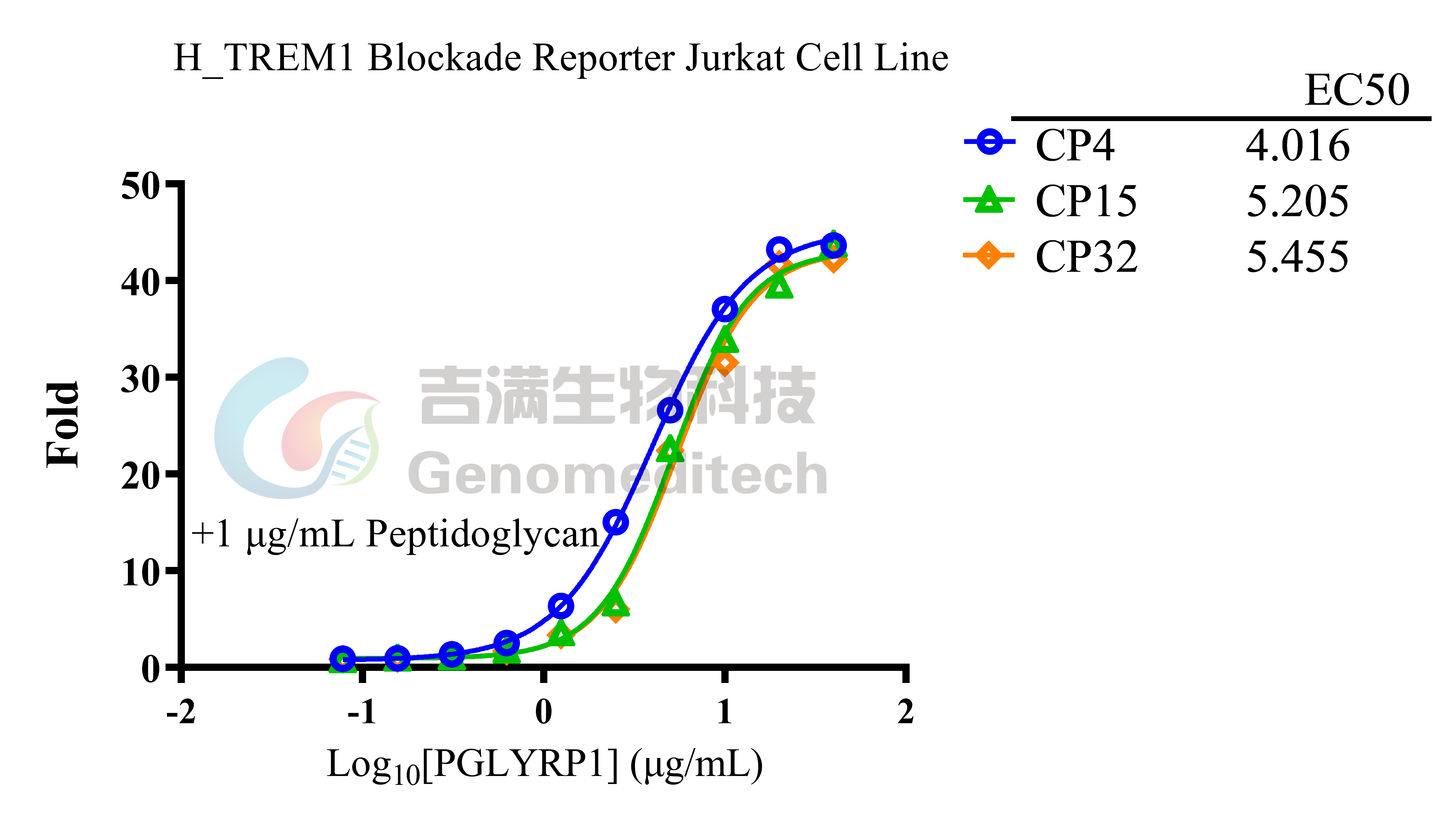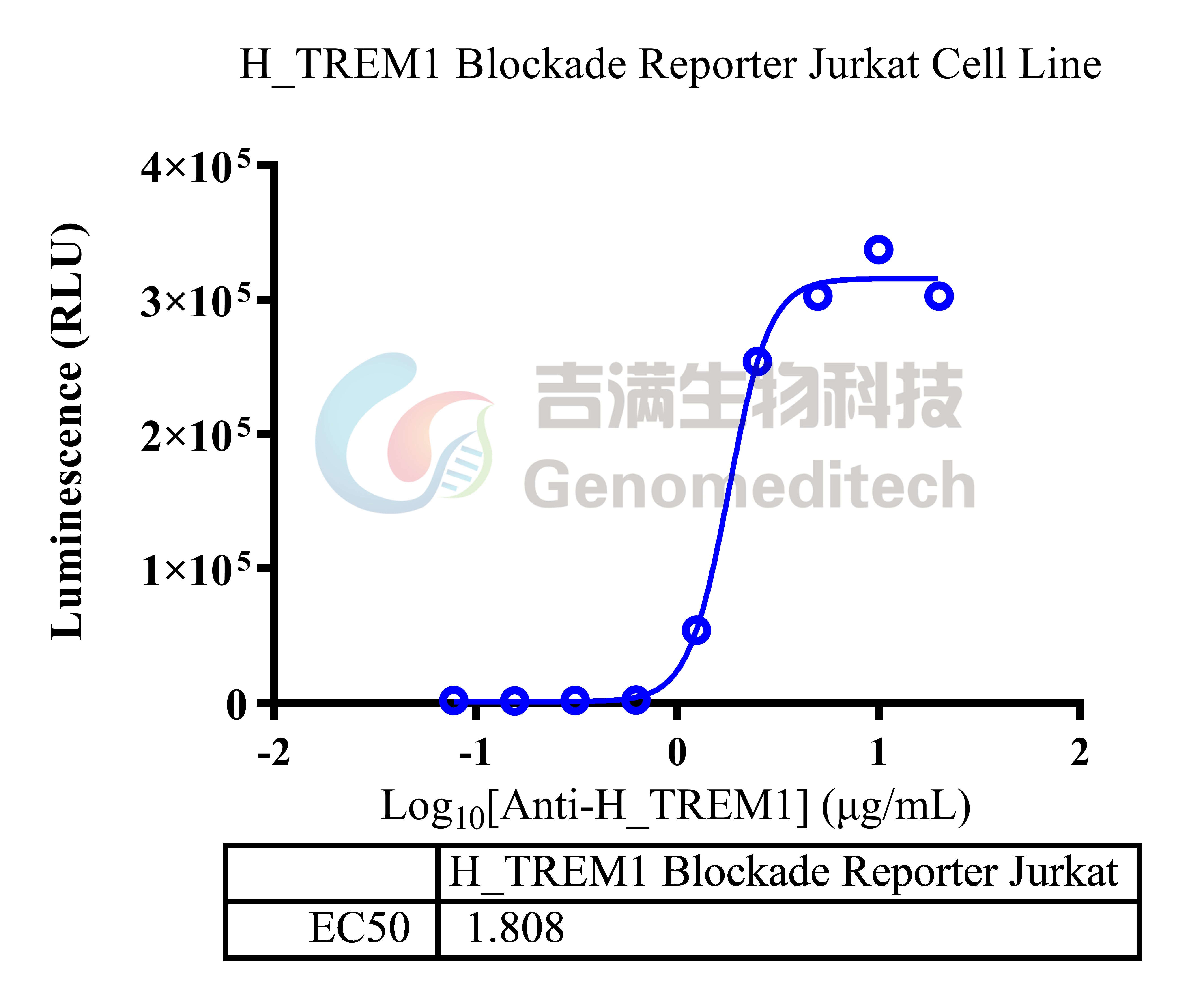 | 产品编号:GM-C15720 产品名称:H_TREM1 Blockade Reporter Jurkat Cell Line 在骨髓细胞上表达的触发受体1 (TREM-1) 是一种由TREM1基因编码的蛋白质。单核细胞/巨噬细胞和中性粒细胞介导的炎症反应可被多种受体刺激产生,包括G蛋白偶联受体(例如,FPR1)、Fc受体、CD14、Toll样受体(TLR;例如,TLR4)和细胞因子受体。TREM-1通过进一步增加促炎细胞因子的产生来放大toll样受体诱导的炎症。 TREM-1与同型二聚体 DAP12结合,导致其上的免疫受体酪氨酸活化基序(ITAM) 被酪氨酸激酶磷酸化。从而募集脾酪氨酸激酶SYK和ZAP70,从而激活PLC通路,提高细胞内Ca2+浓度,诱导抗炎细胞因子反应,导致转录因子被激活。 吉满生物H_TREM1 Blockade Reporter Jurkat Cell Line报告基因细胞系,是基于PLC信号通路构建的一种Luciferase报告基因细胞系。通过转录因子的激活,从而激活荧光素酶(Luciferase)的表达。Luciferase读值即代表信号通路的激活效果,因此可用于TREM1相关药物的体外效果评价。 | ![]() |