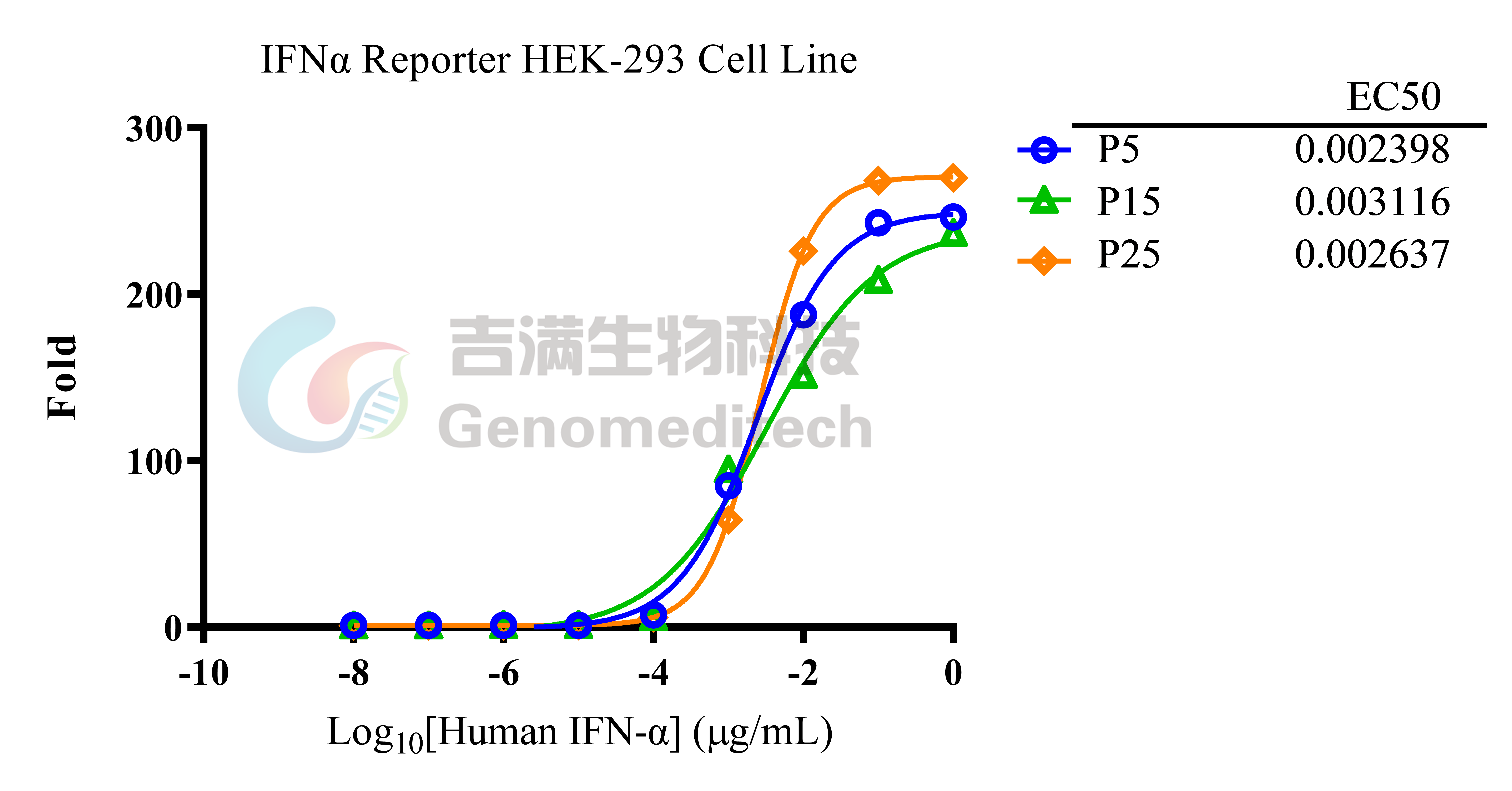 产品编号:GM-C21639 产品名称:IFNα Reporter HEK-293 Cell Line IFN-α由多种细胞类型分泌,通过刺激巨噬细胞和 NK 细胞引发抗病毒反应,且具有抗肿瘤活性。IFN-α通过改变下丘脑中热敏神经元的活动而充当致热因子,从而引起发烧。运用类似的机制,IFN-α可以用来减轻疼痛,与 μ-阿片受体相互作用,起到镇痛剂的作用。 所有 I 型干扰素 (IFN:IFN-α、IFN-β、IFN-ε、IFN-κ和IFN-ω)都与人体细胞表面的一个共同受体结合,该受体被称为 I 型 IFN 受体。I 型 IFN 受体由两个亚基 IFNAR1 和 IFNAR2 组成,它们分别与 Janus 活化激酶 (JAK) 酪氨酸激酶 2 (TYK2) 和 JAK1 相关。与 I 型 IFN 受体相关的 JAK 的激活导致 STAT2和 STAT1 的酪氨酸磷酸化;这导致 STAT1-STAT2-IRF9复合物的形成,它们被称为 ISGF3(干扰素刺激基因 (ISG) 因子 3)复合物。这些复合物易位到细胞核并结合 DNA 中的 IFN 刺激反应元件以启动基因转录。 吉满生物IFNα Reporter HEK-293 Cell Line报告基因细胞系,是基于STATs信号通路构建的一种Luciferase报告基因细胞系。当IFN-α结合I 型 IFN 受体( IFNAR1 和 IFNAR2 )后,导致信号通路激活,形成ISGF3复合物,复合物易位到细胞核并结合DNA中的IFN 刺激反应元件,从而激活荧光素酶(Luciferase)的表达。Luciferase读值即代表信号通路的激活效果,因此可用于IFNα相关药物的体外效果评价。 | ![]() |