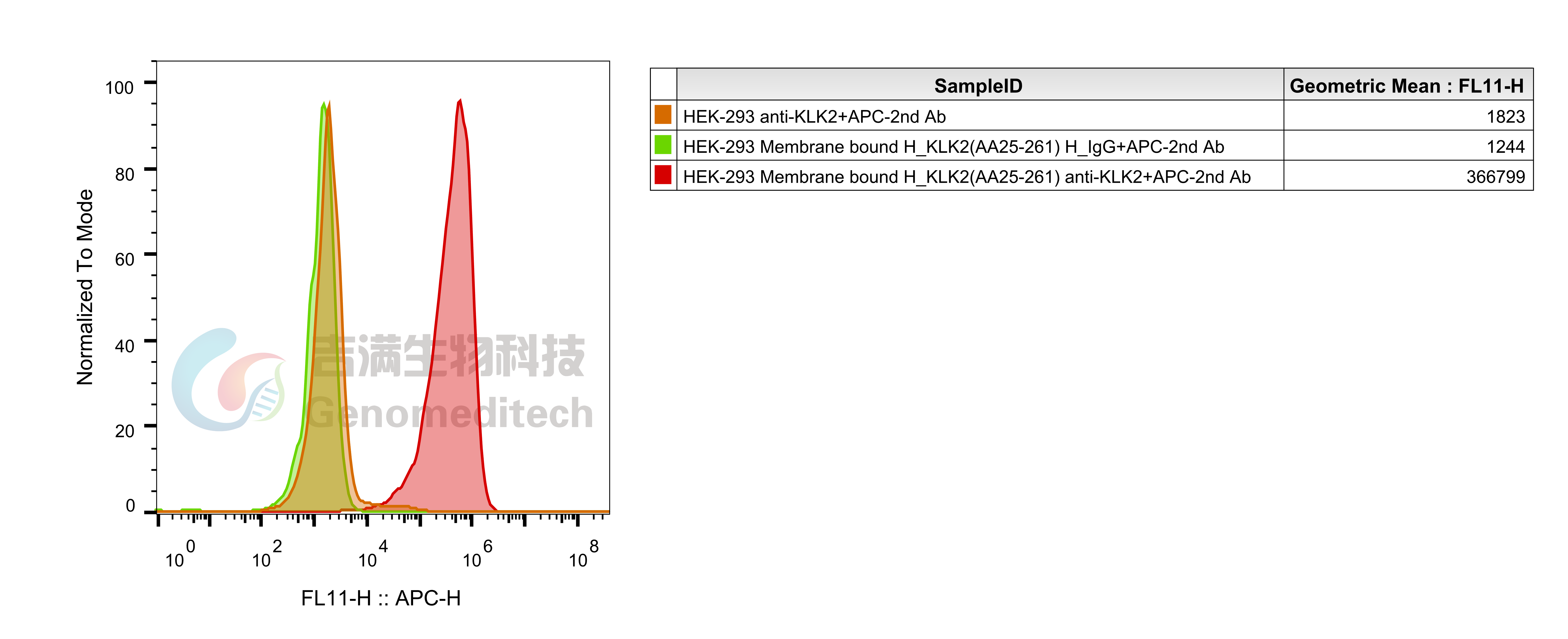 基于HEK-293细胞,使用慢病毒技术构建的稳定表达Membrane bound H_KLK2(AA25-261)的单克隆细胞系。