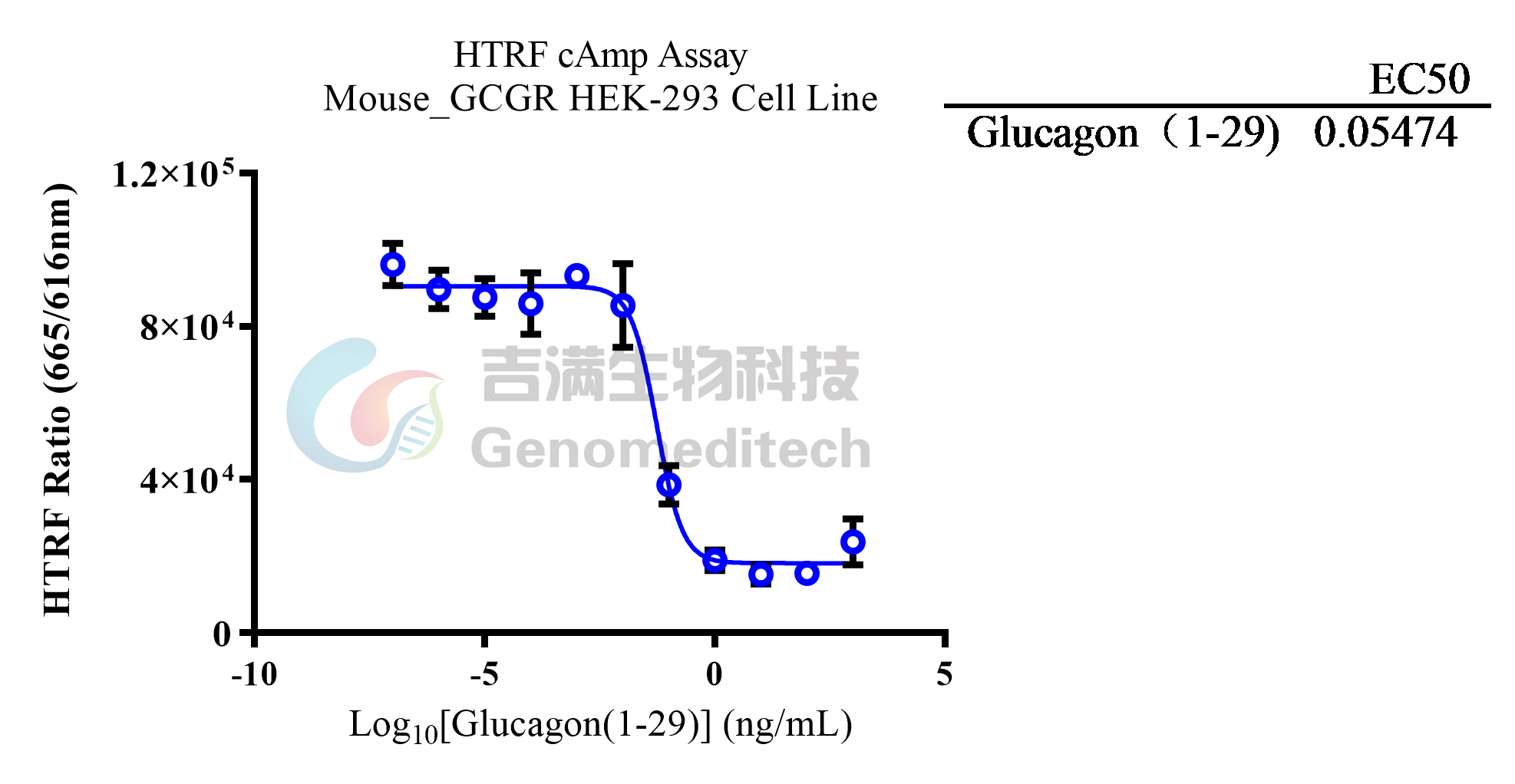 基于HEK-293细胞,使用慢病毒技术构建的稳定表达Mouse_GCGR的单克隆细胞系。