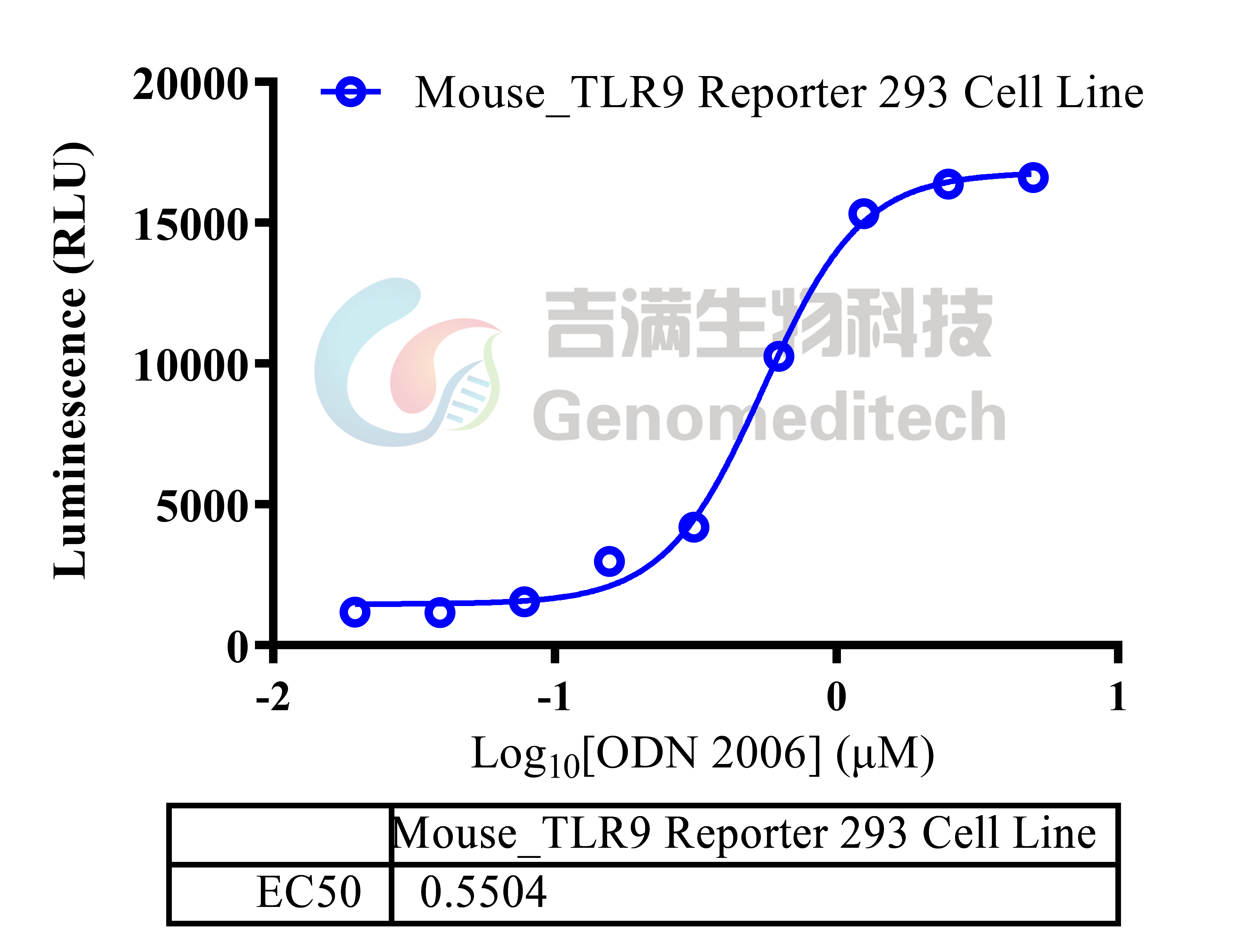 | 产品编号:GM-C29312 产品名称:Mouse_TLR9 Reporter 293 Cell Line Toll样受体(Toll-like receptors, TLR)是参与非特异性免疫(天然免疫)的一类重要蛋白质分子,也是连接非特异性免疫和特异性免疫的桥梁。TLR9 是Toll样受体家族的成员,在免疫系统细胞中表达,包括树突状细胞、巨噬细胞、自然杀伤细胞和其他抗原呈递细胞。TLR9 优先结合存在于细菌和病毒中的 DNA,并触发导致促炎细胞因子反应的信号级联反应。TLR9 通常被DNA 分子中未甲基化的CpG 序列激活。激活后,TLR9 从内质网移动到高尔基体和溶酶体,在那里它与信号通路中的主要蛋白 MyD88 相互作用,并激活下游信号。 吉满生物Mouse_TLR9 Reporter 293 Cell Line报告基因细胞系,是基于TLR9信号通路构建的一种Luciferase报告基因细胞系。该细胞稳定表达小鼠TLR9基因及Luciferase报告基因,可用于作用于TLR9的核酸药物的体外激活效果评价。 | ![]() |
