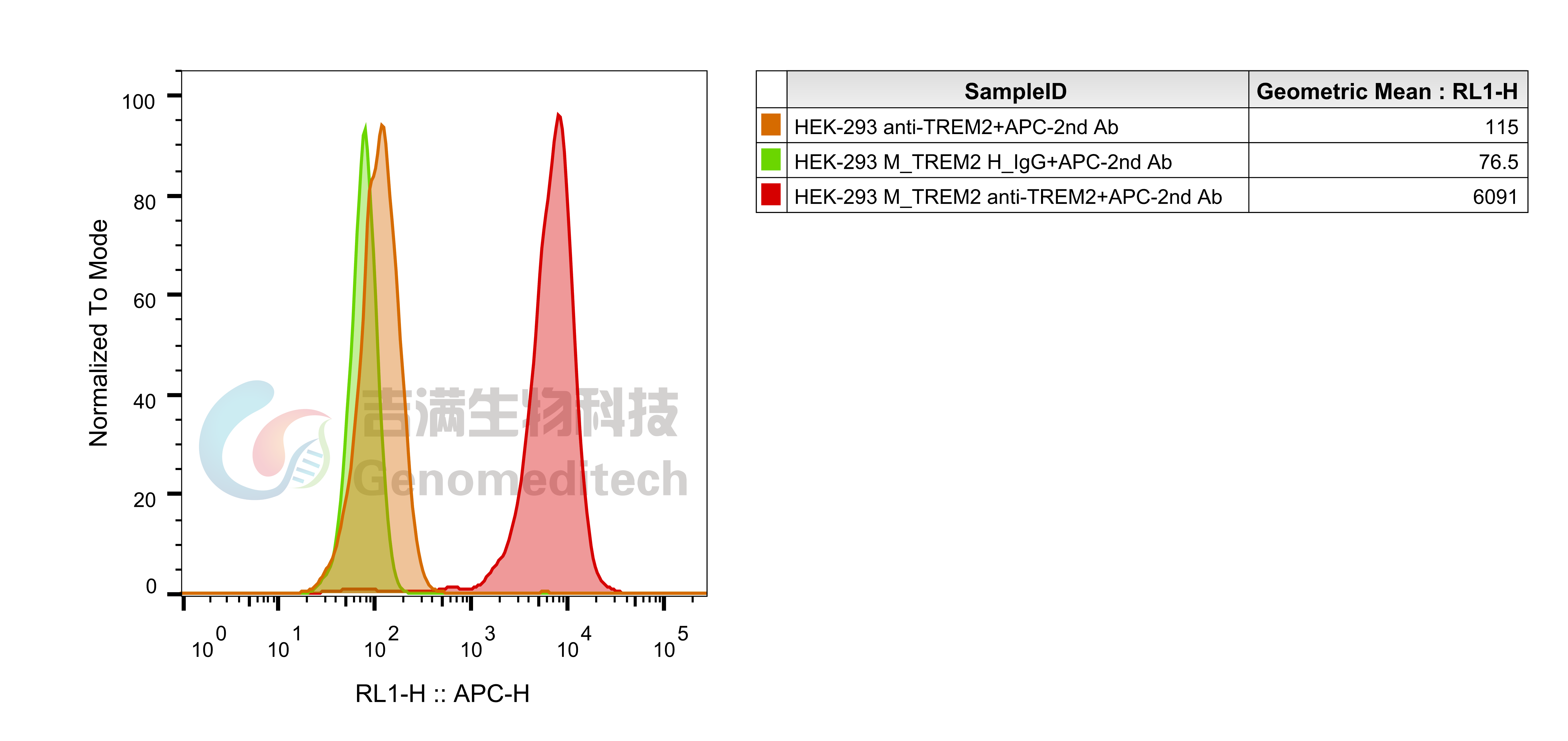 基于HEK-293细胞,使用慢病毒技术构建的稳定表达Mouse_TREM2的单克隆细胞系。
