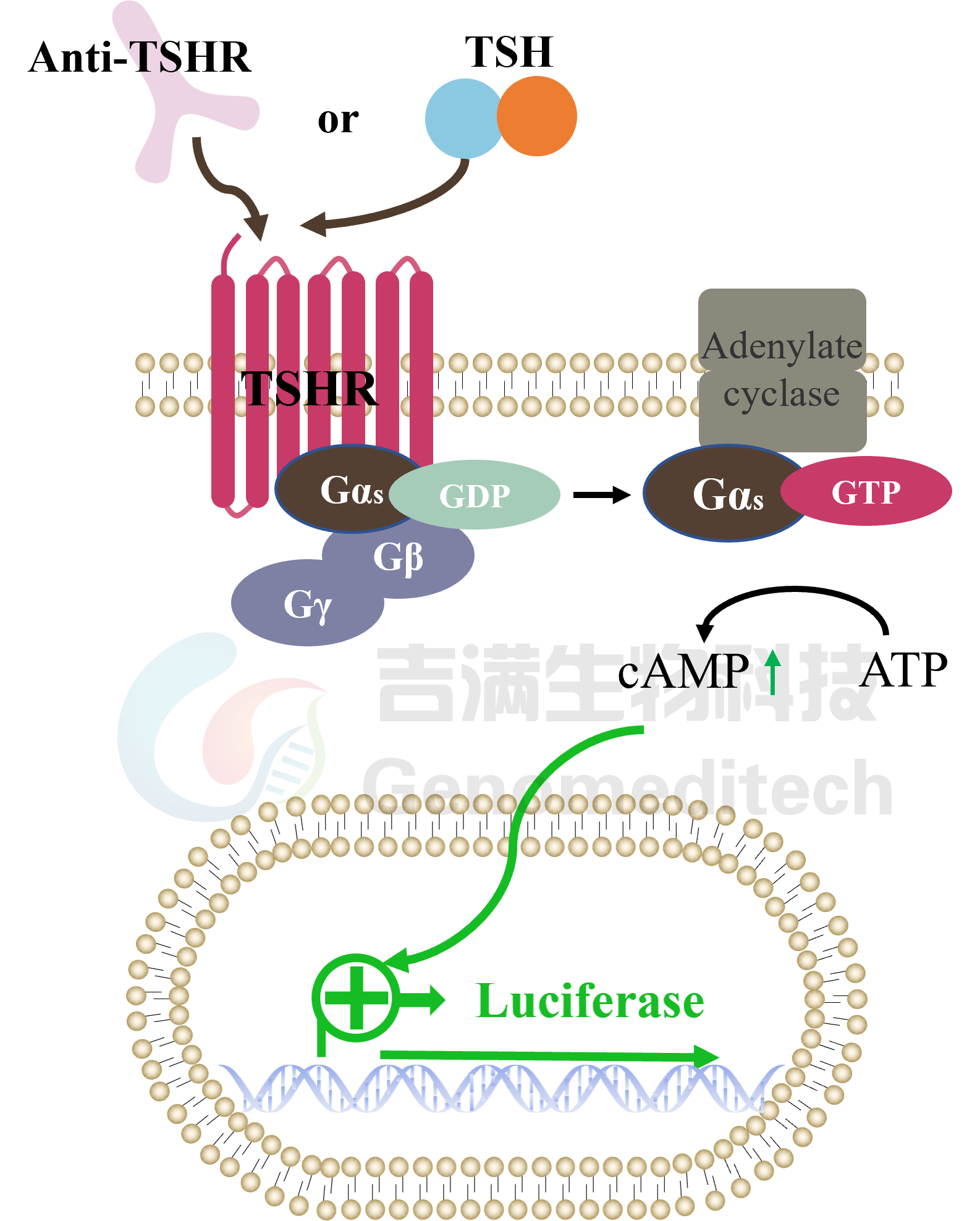 | 产品编号:GM-C42612 产品名称:H_TSHR Reporter HEK-293 Cell Line TSHR(Thyroid-Stimulating Hormone Receptor;促甲状腺激素受体)是一种重要的跨膜蛋白,属于G蛋白偶联受体(GPCR)家族。主要表达于甲状腺滤泡上皮细胞膜,通过与促甲状腺激素(TSH)结合激活腺苷酸环化酶信号通路,驱动甲状腺激素(T3/T4)的合成与释放。其异常活化或失活可导致多种甲状腺疾病:过度激活引发Graves病(毒性弥漫性甲状腺肿)和甲状腺毒症,表现为代谢亢进;功能缺陷则导致原发性甲状腺功能减退症,需依赖左旋甲状腺素(LT4)终身替代治疗。此外,TSHR信号通路还参与脂肪代谢、骨代谢和能量稳态调节,其非甲状腺特异性作用为肥胖、骨质疏松等代谢性疾病的治疗提供了潜在新方向。 吉满生物H_TSHR Reporter HEK-293 Cell Line细胞系是基于转录因子信号通路构建的Luciferase报告基因细胞系。当配体与受体结合,激活下游信号通路,从而激活荧光素酶(Luciferase)的表达,Luciferase读值即代表信号通路的激活效果。因此可用于相关药物的体外评价效果。 | ![]() |