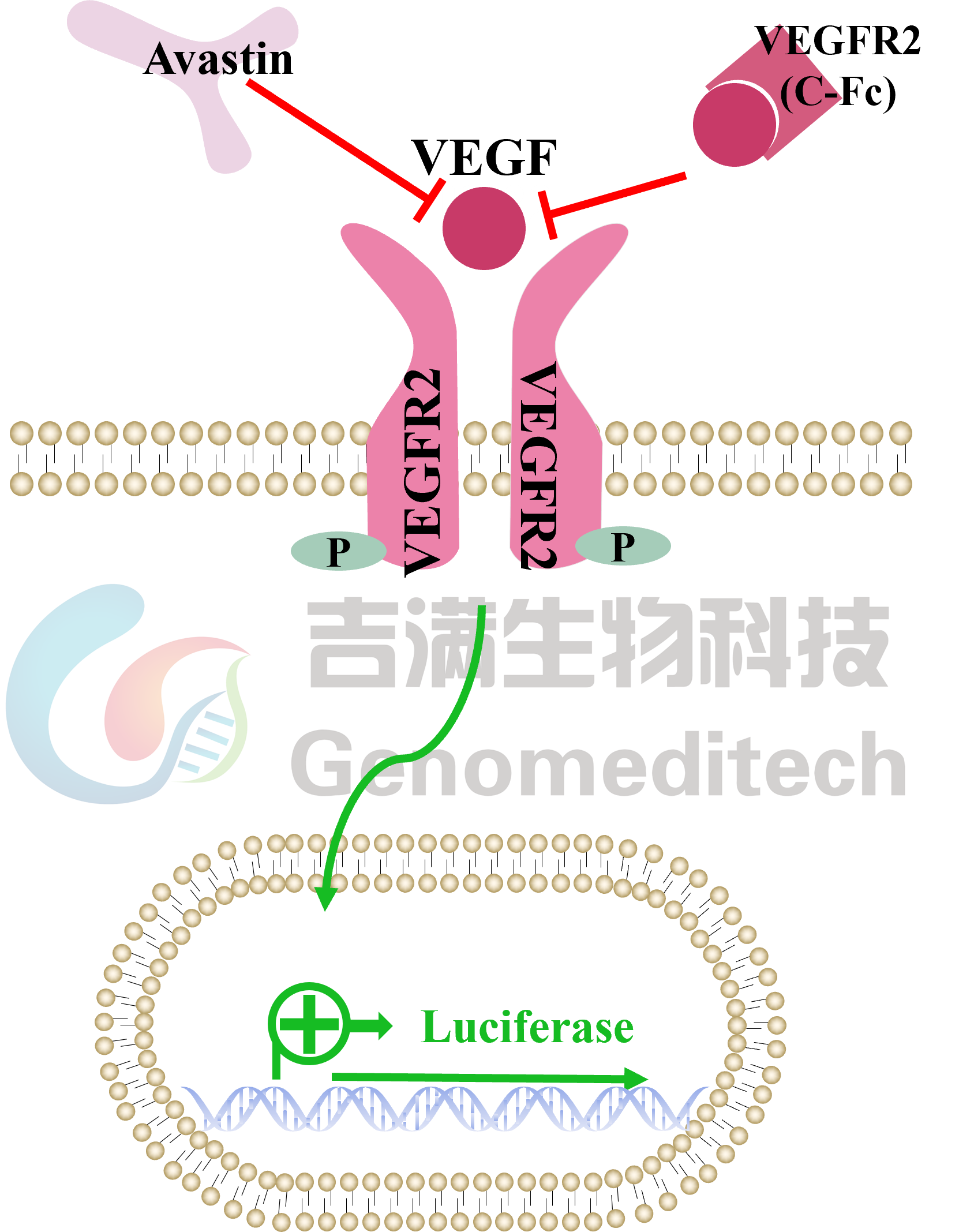 H_VEGF Reporter 293 Cell Line是基于转录因子信号通路构建的Luciferase报告基因细胞系。当VEGF结合VEGFR2受体后,激活转录因子信号通路,从而激活荧光素酶(Luciferase)的表达。Luciferase读值即代表信号通路的激活效果,因此可用于VEGF相关药物的体外效果评价。