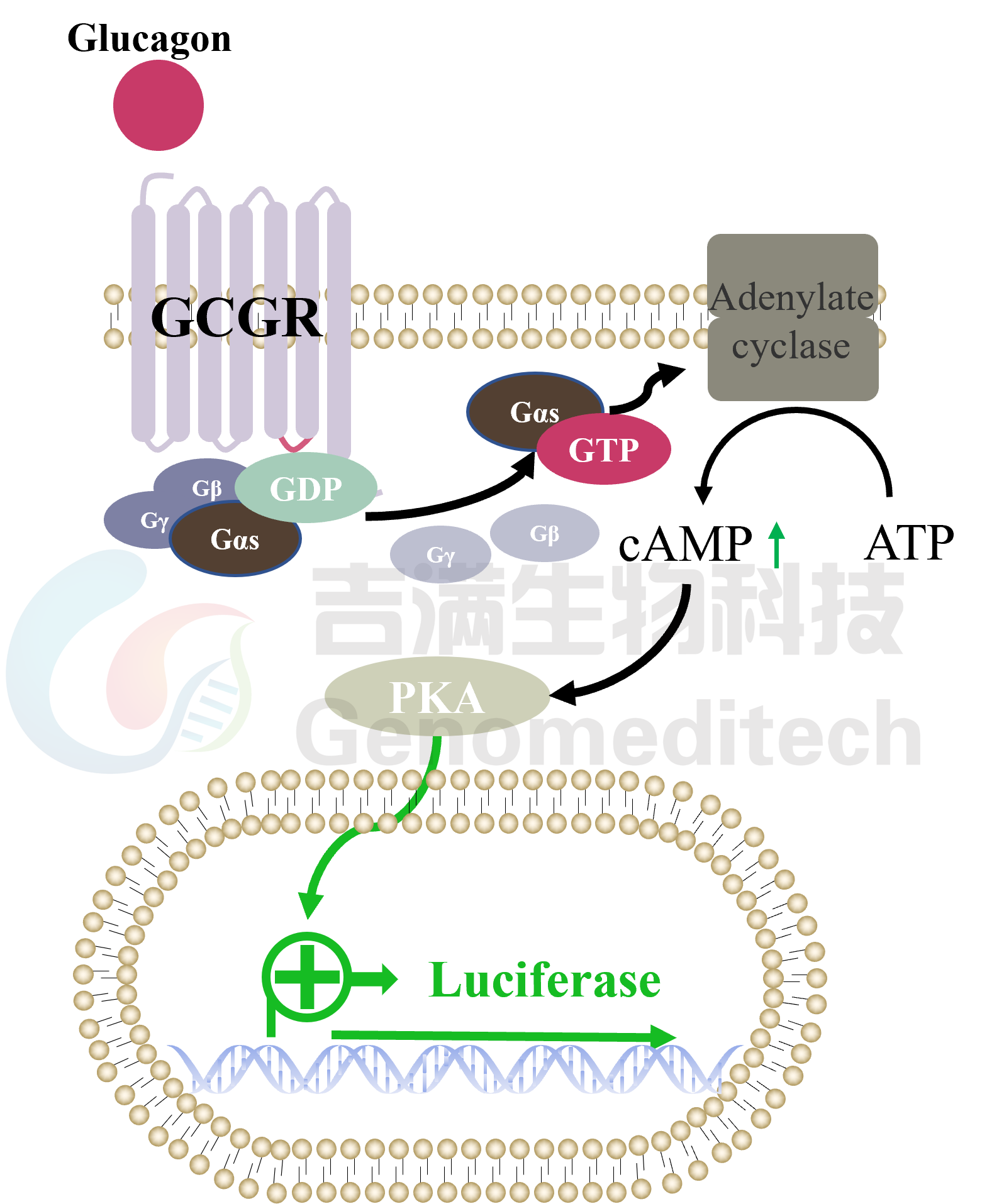| 产品编号:GM-C09151 产品名称:H_GCGR Reporter CHO-K1 Cell Line 胰高血糖素受体(GCGR)是一种62 kDa的蛋白质,由胰高血糖素(Glucagon)激活,是B类G蛋白偶联受体家族的成员。胰高血糖素受体主要表达于肝脏和肾脏。胰高血糖素激活的GCGR通过与异源三聚体Gs(αβγ)结合,诱导腺苷酸环化酶活化,增加细胞质中的cAMP水平, cAMP激活PKA,使调节基因转录蛋白磷酸化,并导致其移位至细胞核。 吉满生物H_GCGR Reporter CHO-K1 Cell Line报告基因细胞系,是基于GCGR信号通路构建的一种Luciferase报告基因细胞系。当胰高血糖素与其受体GCGR结合时,GCGR与异源三聚体Gs(αβγ)结合,诱导腺苷酸环化酶活化,增加细胞质中的cAMP水平, cAMP激活PKA,使调节基因转录蛋白磷酸化从而激活荧光素酶(Luciferase)的表达。Luciferase读值即代表信号通路的激活效果,因此可用于GCGR相关药物的体外效果评价。 | ![]() |