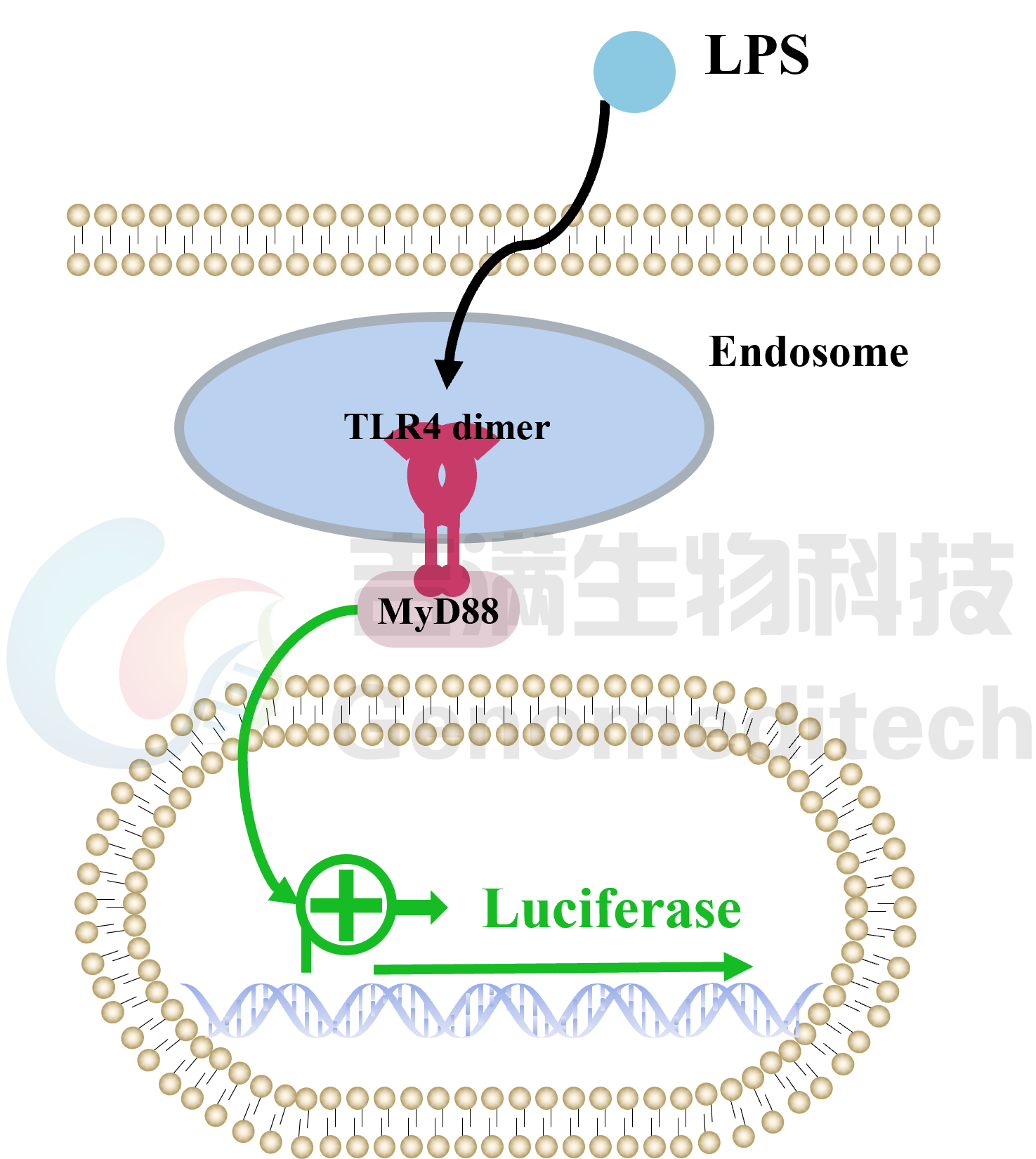 | 产品编号:GM-C02416 产品名称:H_TLR4 Reporter 293 Cell Line Toll样受体(Toll-like receptors, TLR)是参与非特异性免疫(天然免疫)的一类重要蛋白质分子,也是连接非特异性免疫和特异性免疫的桥梁。Toll样受体4(TLR4)作为脂多糖(LPS)的受体,在调节对感染的免疫反应中起着关键作用。激活TLR,可以诱导MyD88或TRIF依赖的信号通路,激活信号,诱导细胞因子和趋化因子分泌,激活先天免疫反应和介导获得性免疫反应的激活,因此将TLR激动剂应用到肿瘤免疫治疗中,有望将冷肿瘤变热,解决单免疫检查点抑制剂应答率低的问题,提高免疫治疗效果。 吉满生物H_TLR4 Reporter 293 Cell Line报告基因细胞系,是基于TLR4信号通路构建的一种Luciferase报告基因细胞系。该细胞稳定表达TLR4基因及Luciferase报告基因,可作用于TLR4药物的体外激活效果评价。 | ![]() |